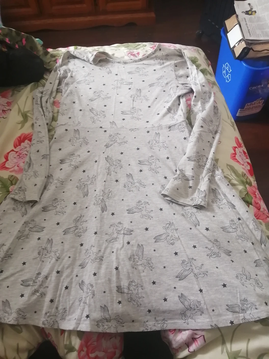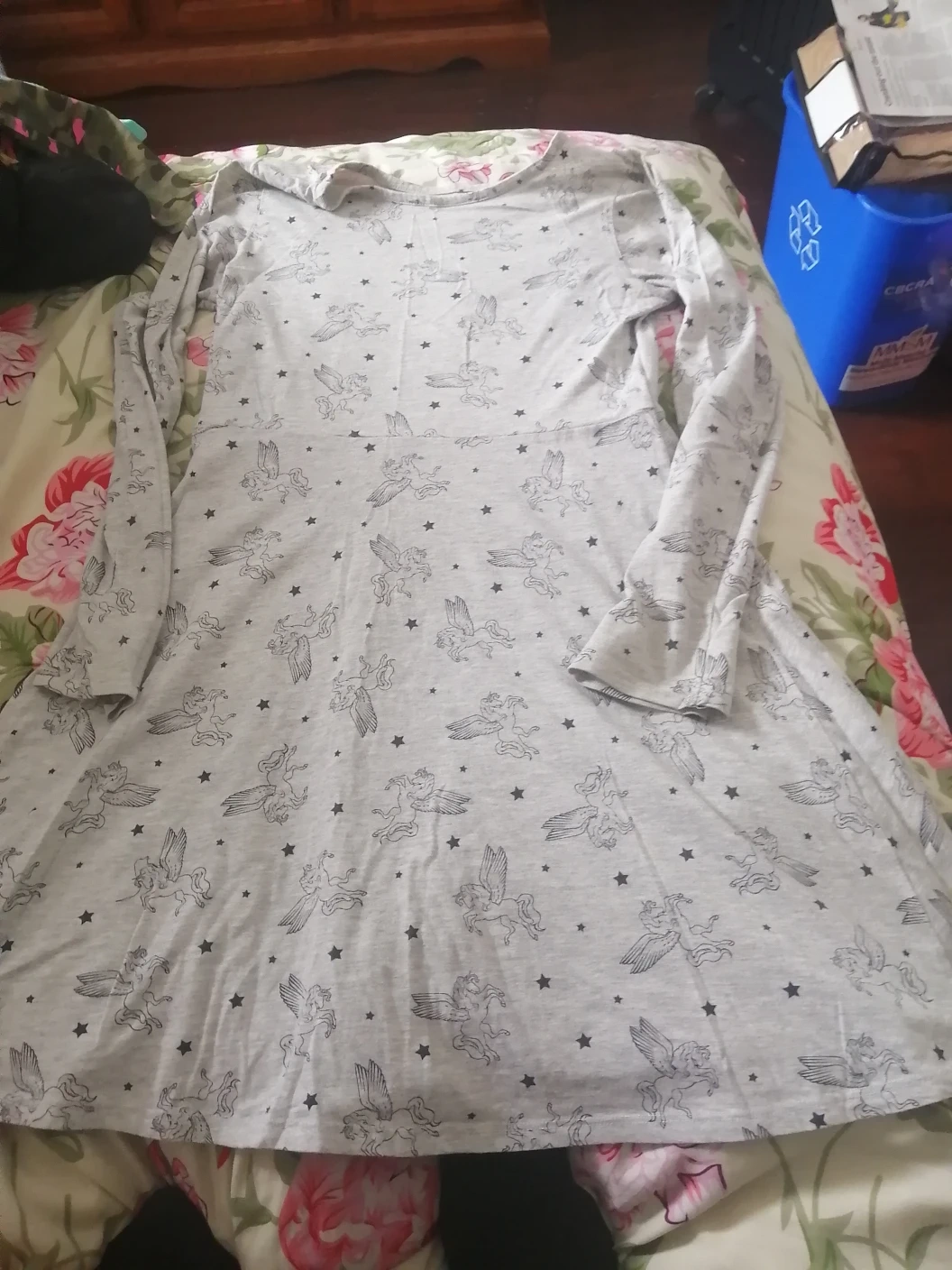 This adorable girls' dress features a cute unicorn print all over! It's a long-sleeved style, perfect for cooler days. The dress is a size 14 and in great condition. It's made of a soft, comfortable material that's perfect for everyday wear