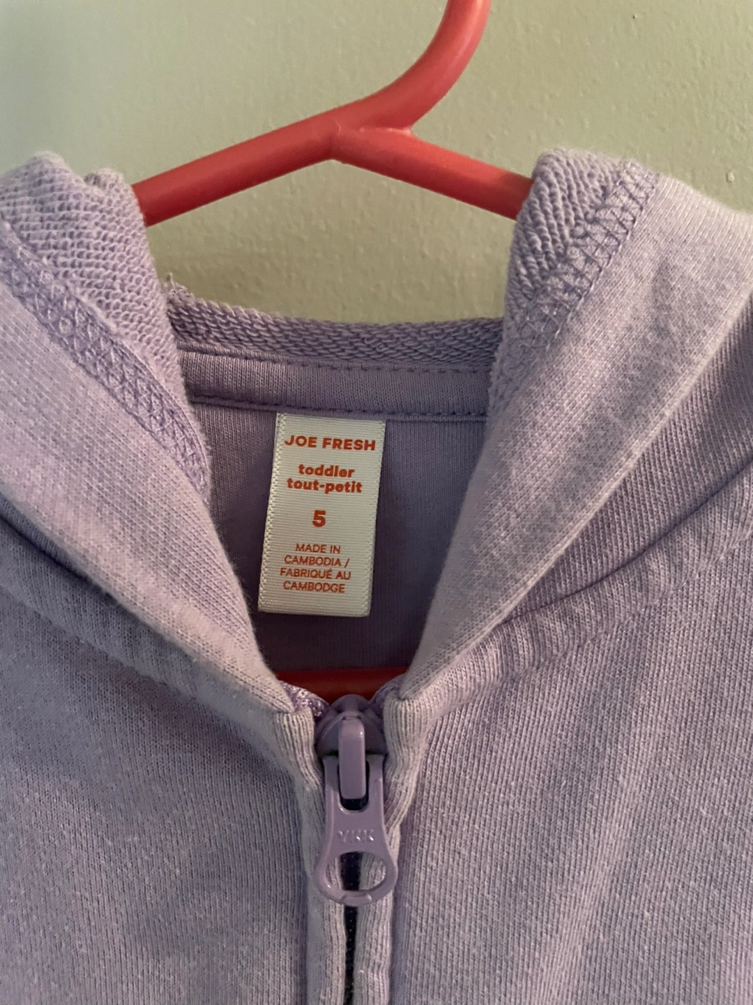 size 5T light purple zip hoodie with pockets like new