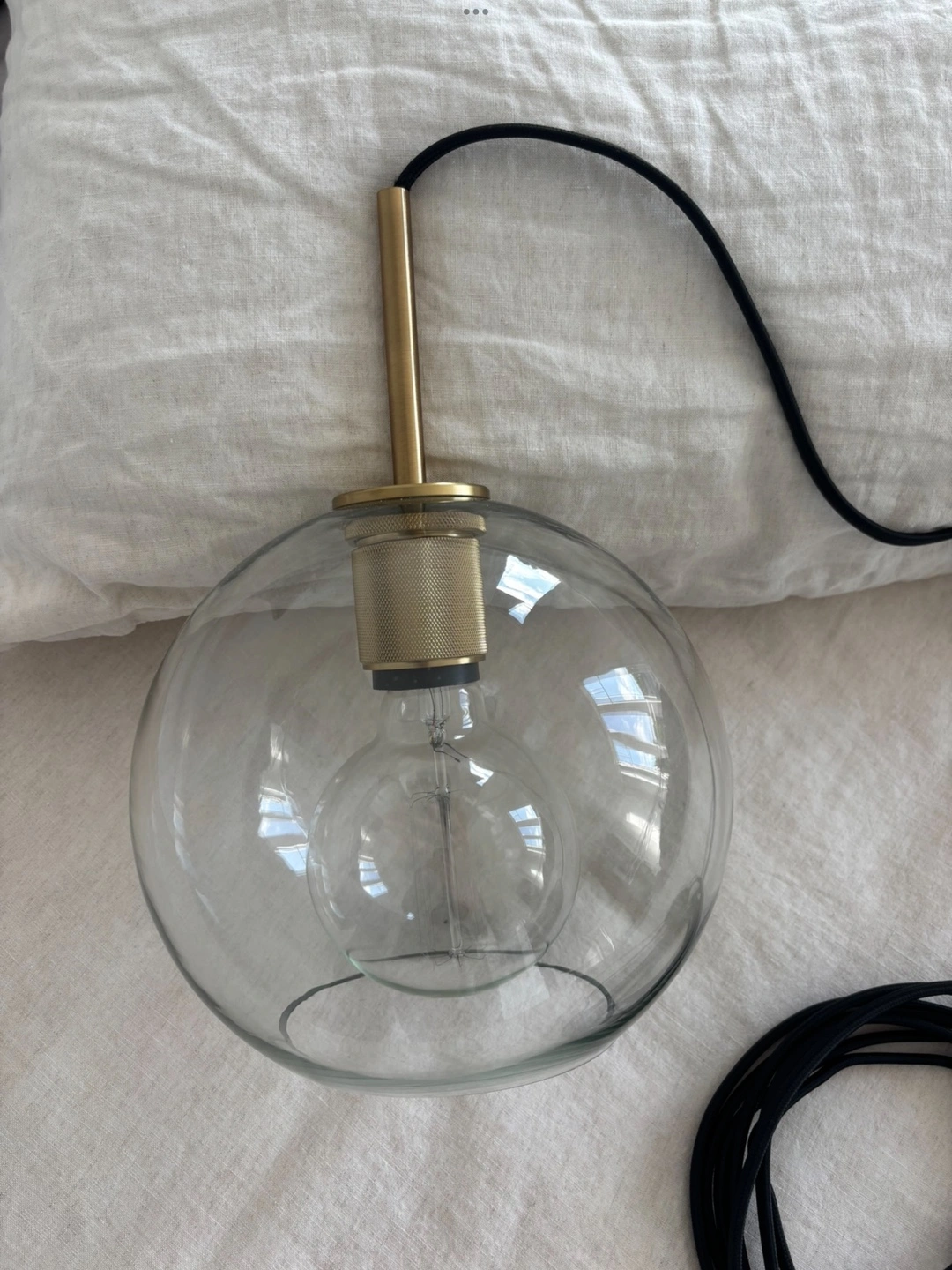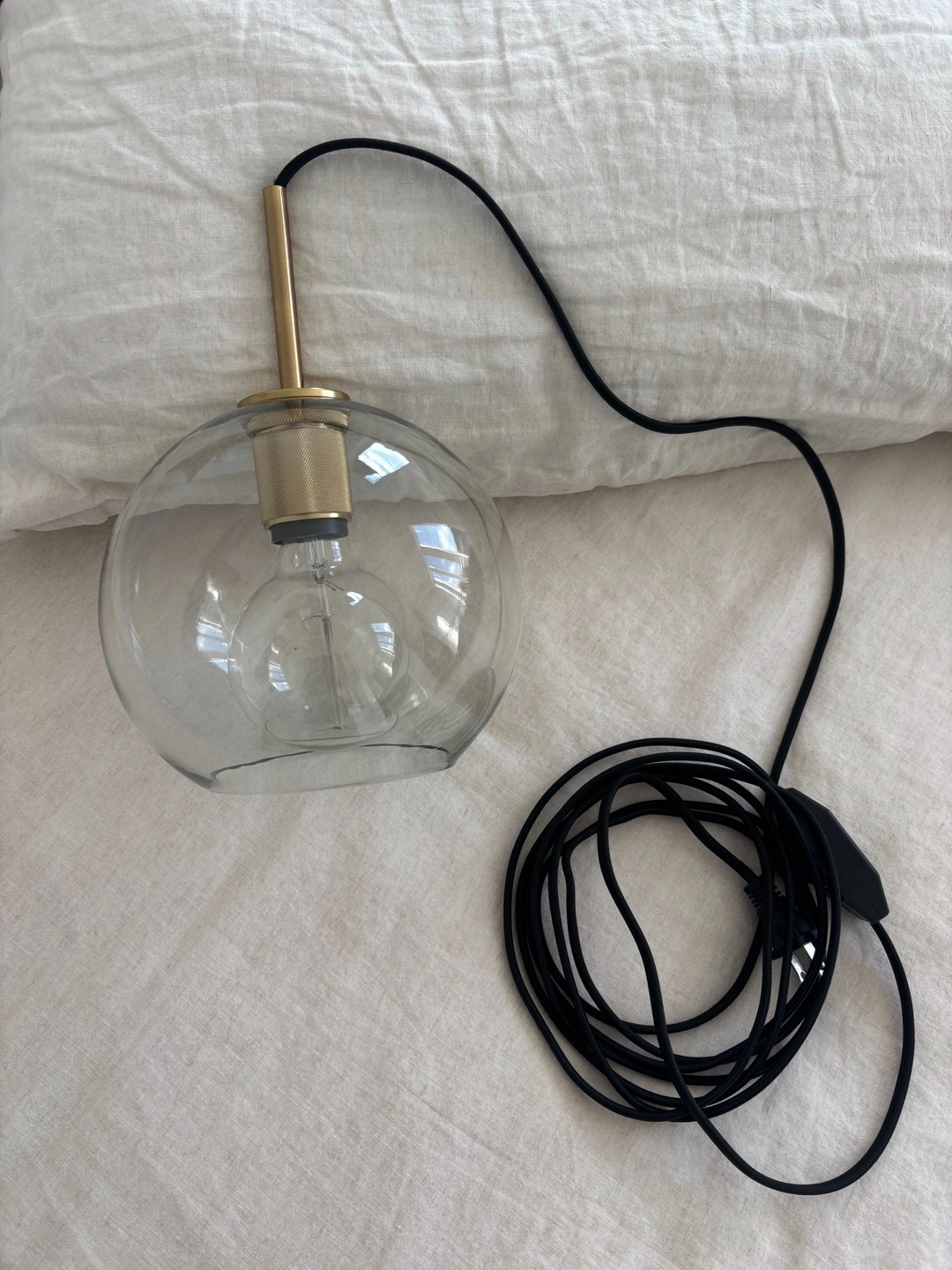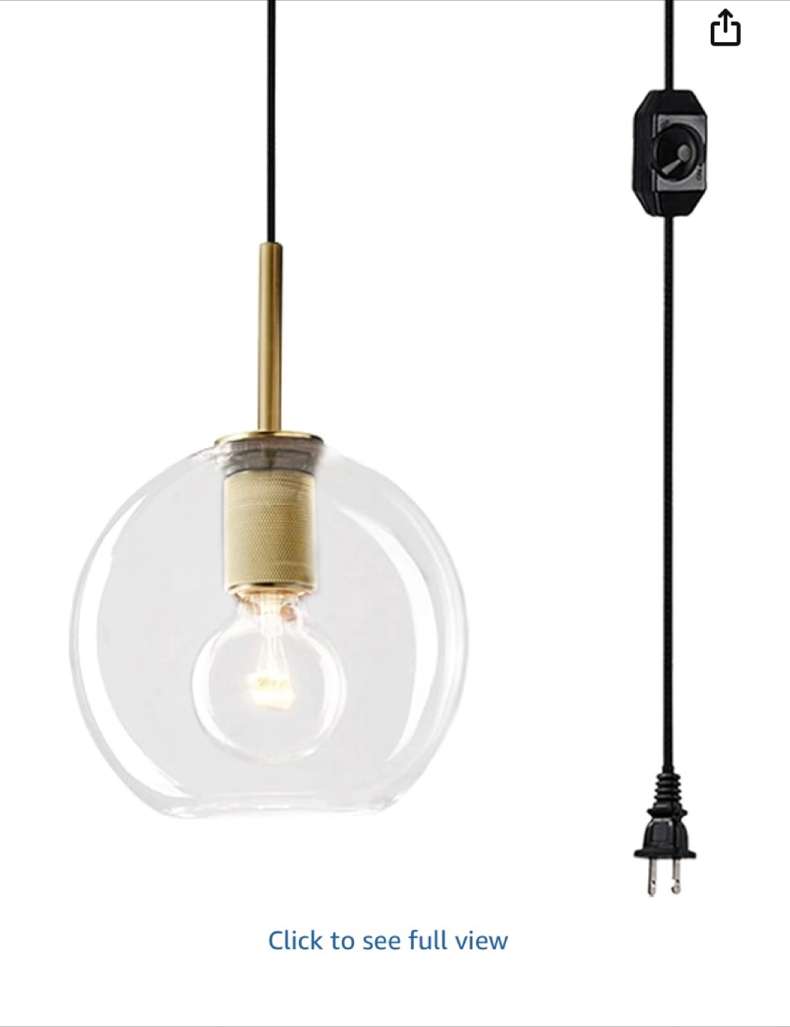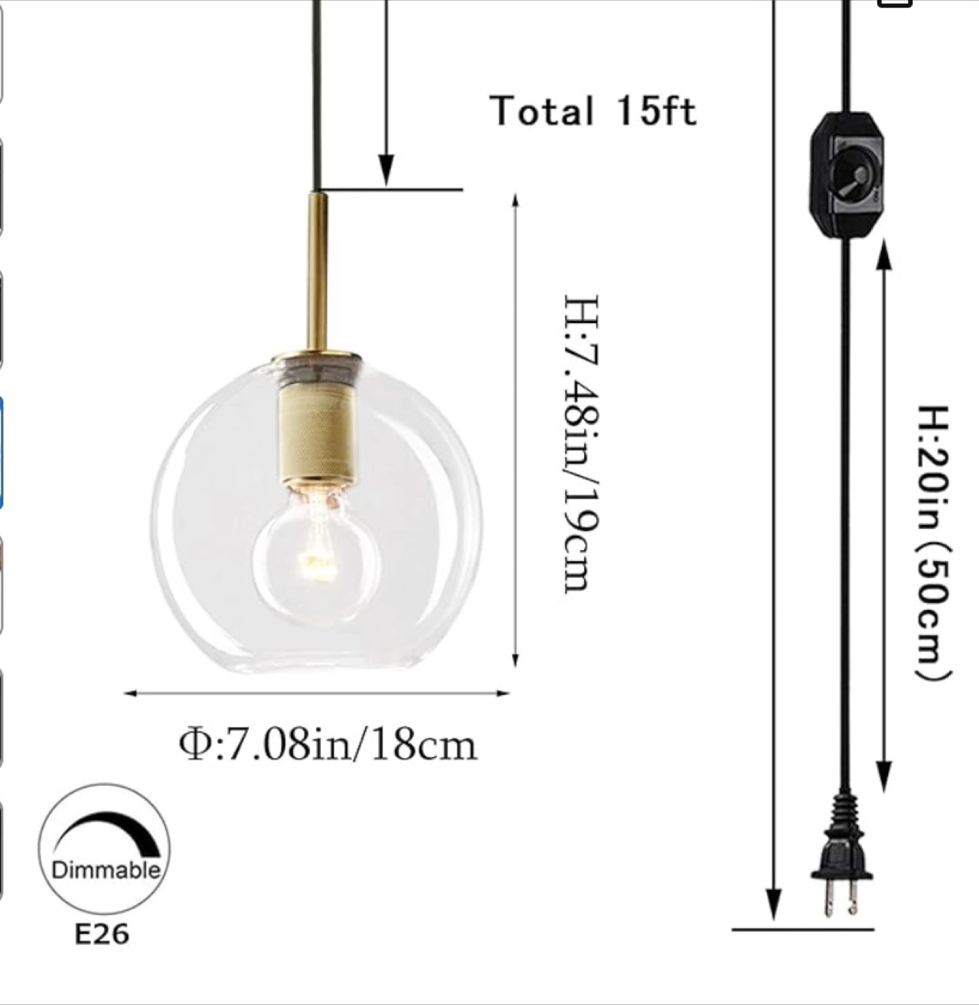 Hanging swag lamp. No wiring needed. Portable pendant lamp with 15 foot plug-in UL dimmable black cord. Brass finished. Nordic/industrial/modern/minimalist hanging lamp. Vintage Edison light bulb included.