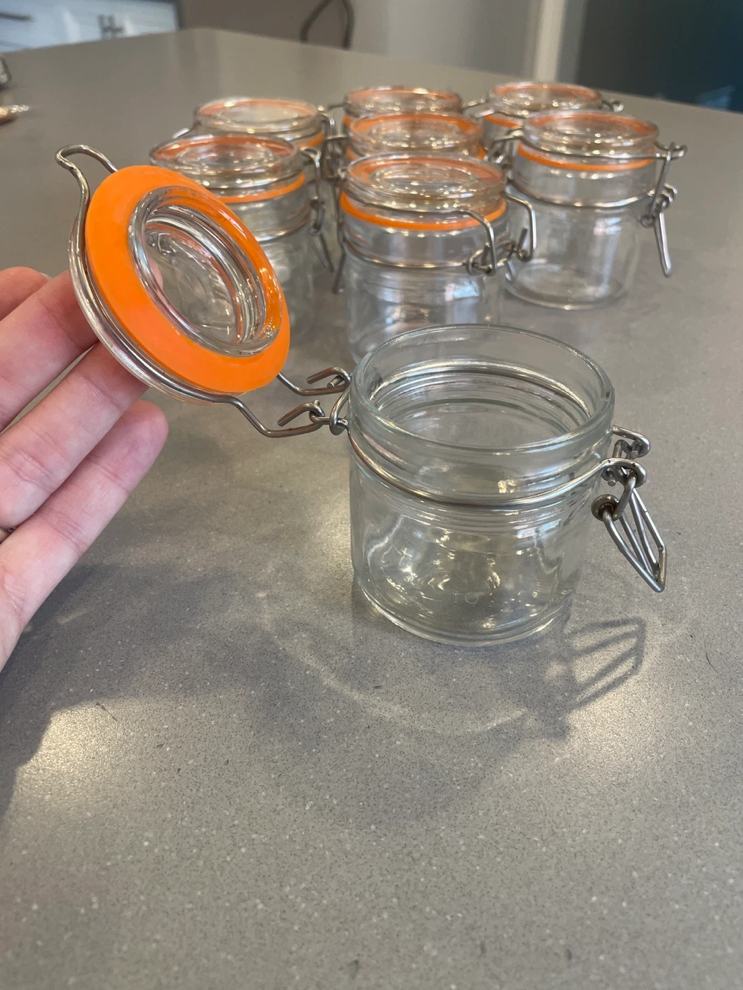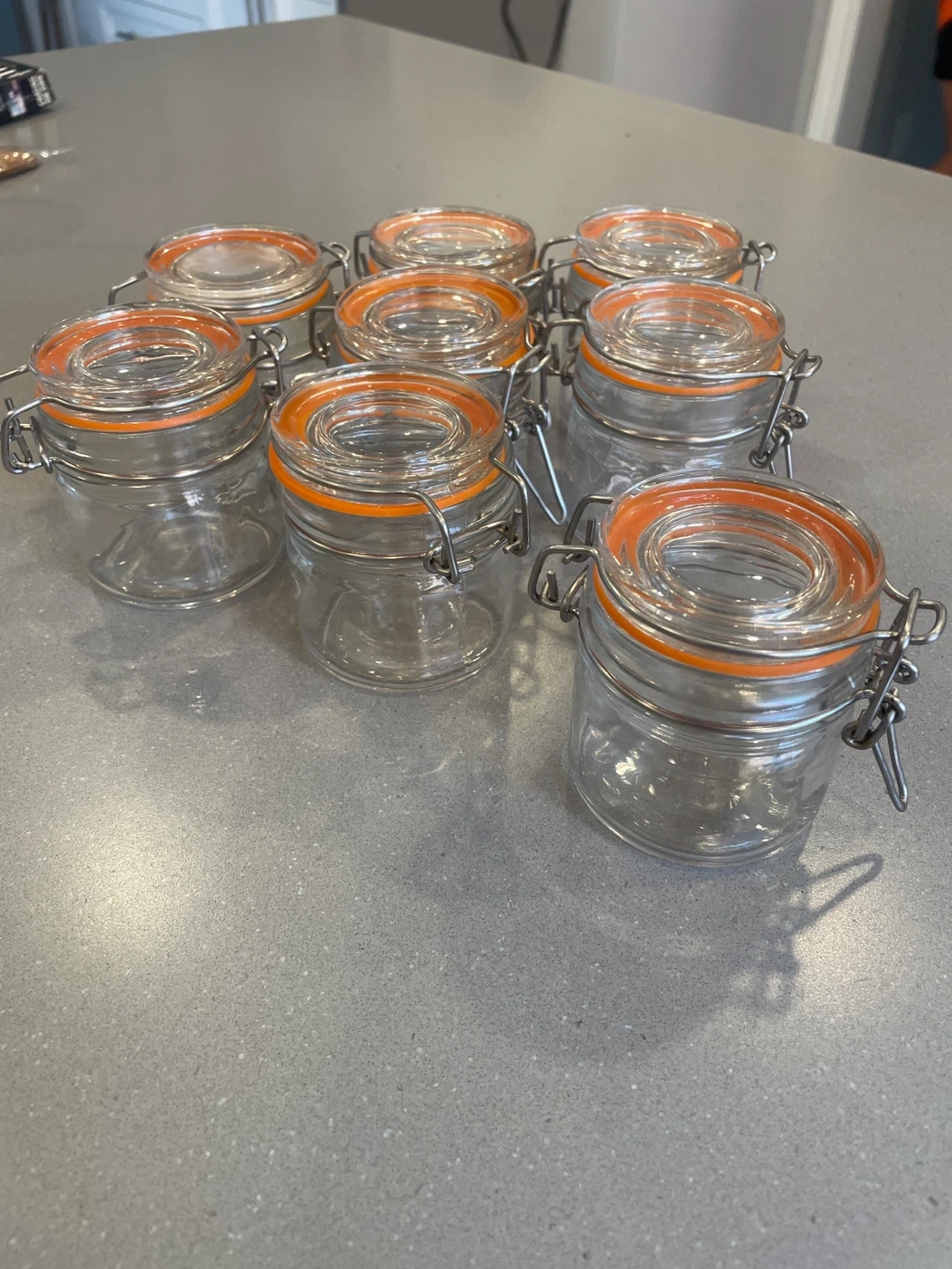 Selling a set of 8 mini glass jars, perfect for storing spices, homemade jams, or small craft items!
