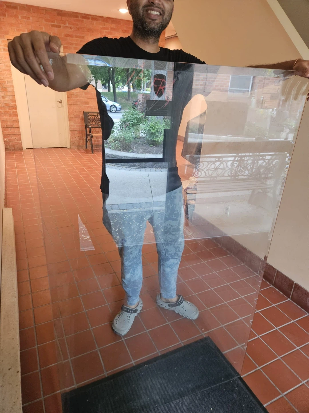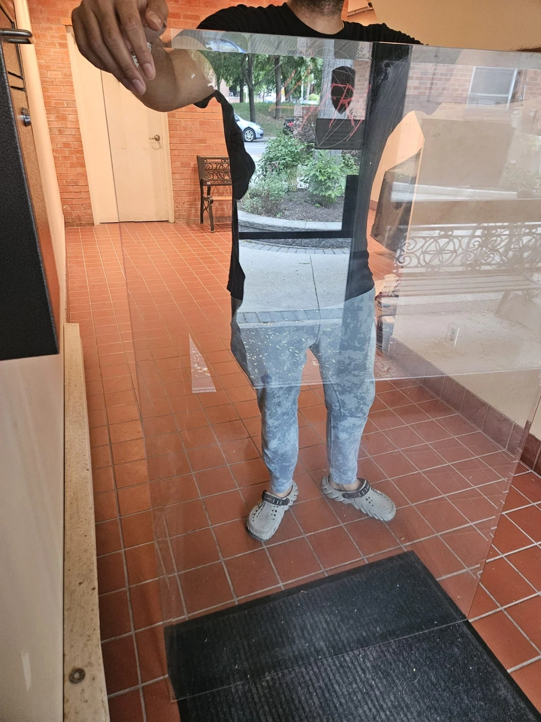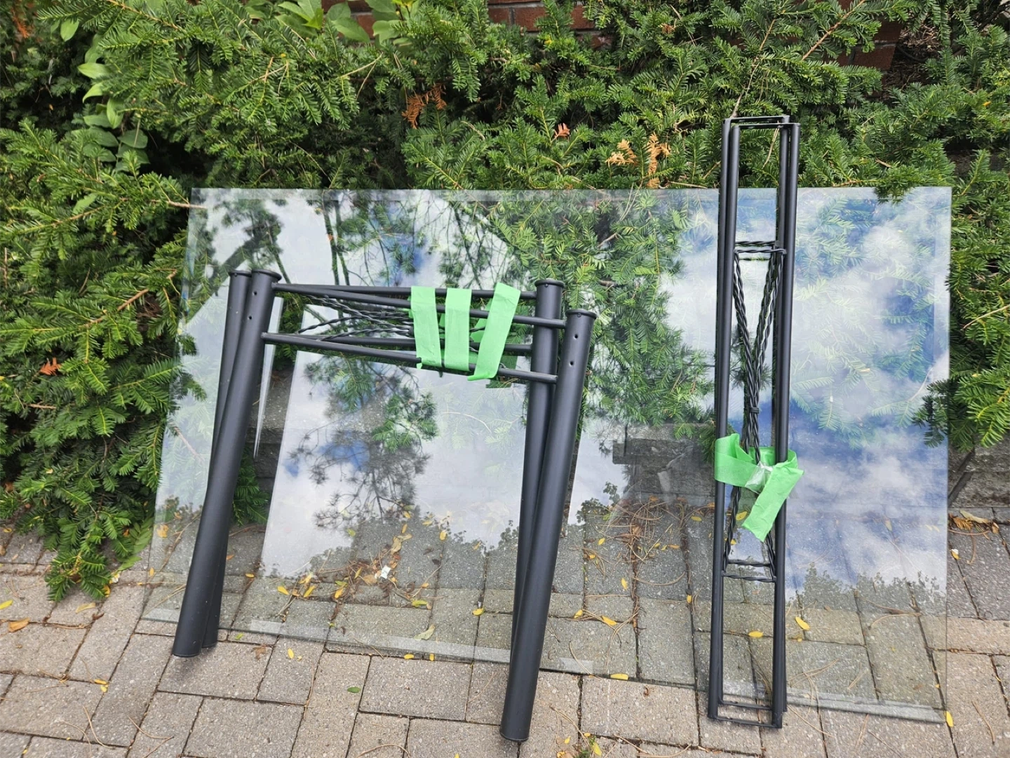 Free - Left outside. 61 Lambertlodge avenue. Not answering any questions. First come first serve. a glass table top with a metal frame. It's in good condition and ready for a new home. 29 inch height, 5feet x3feet