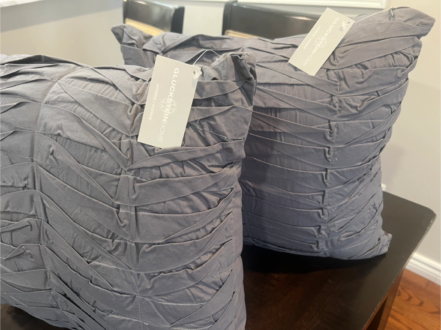 These GlucksteinHome decorative pillows are in great condition and ready to add a touch of modern style to your home. The pillows feature a unique ruched design and a soft, comfortable feel. Perfect for your couch, bed, or favourite chair! $20 for the set