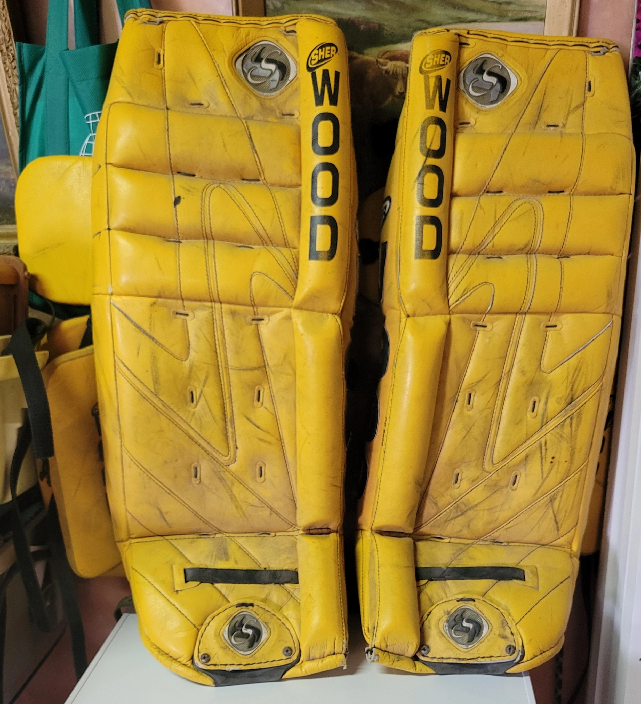 Goalie pads, Sherwood brand. 32". $65. A large sports bag is included with the hockey pads. Located in Elora.