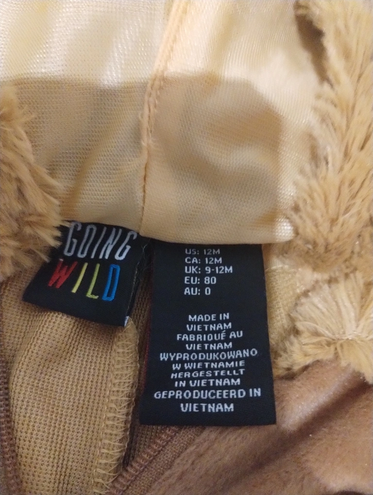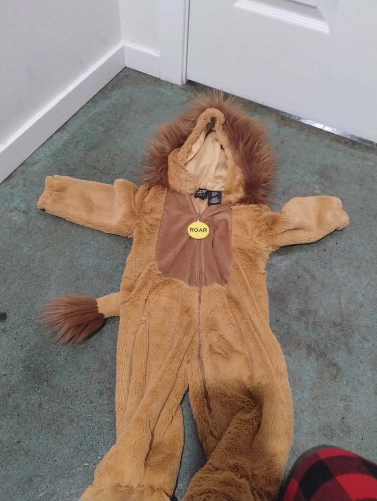 Selling a super cute lion costume from Going Wild! It's a size 12M, perfect for your little one. The costume is in great condition and ready for Halloween or dress-up fun!