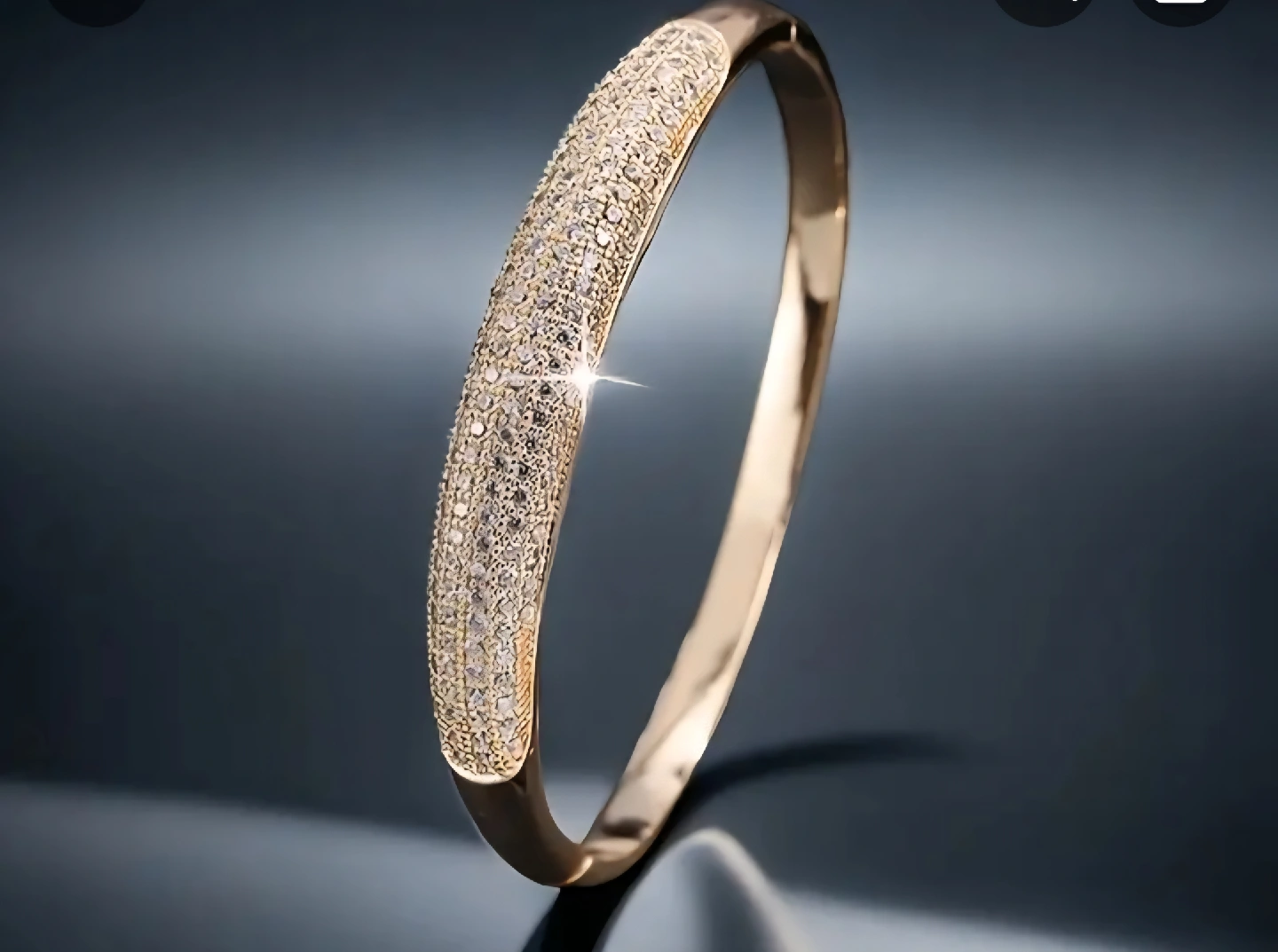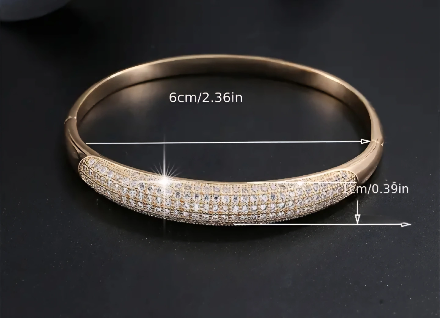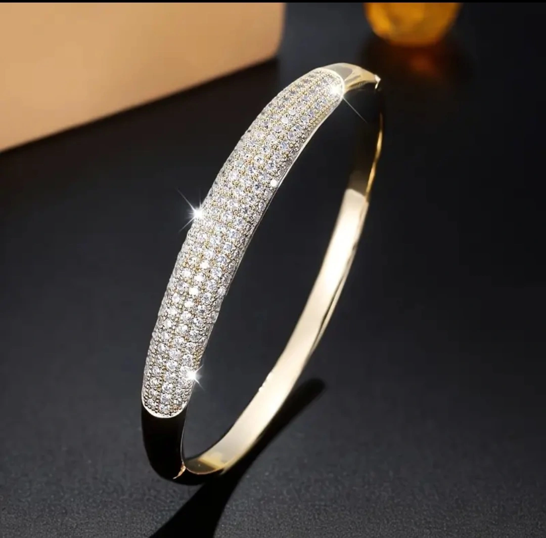 Selling a beautiful gold bangle bracelet! It has a section covered in rhinestones that really catches the light. The bracelet is about 6cm in diameter and 1cm wide. Elegant and versatile.
