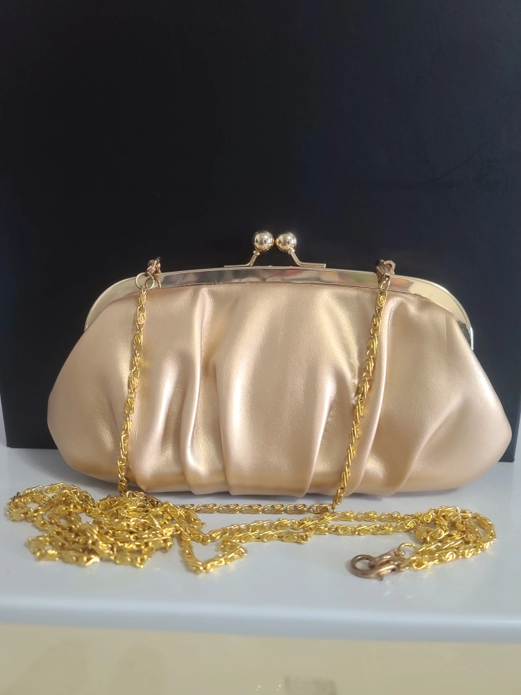 Selling a lovely gold clutch with a gold chain strap. It's in great condition and perfect for a night out or special occasion!
