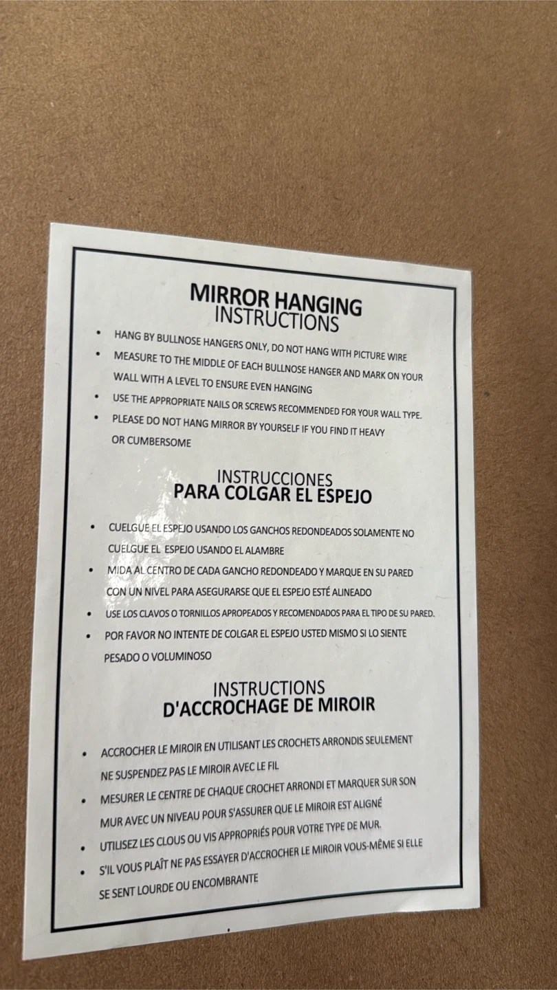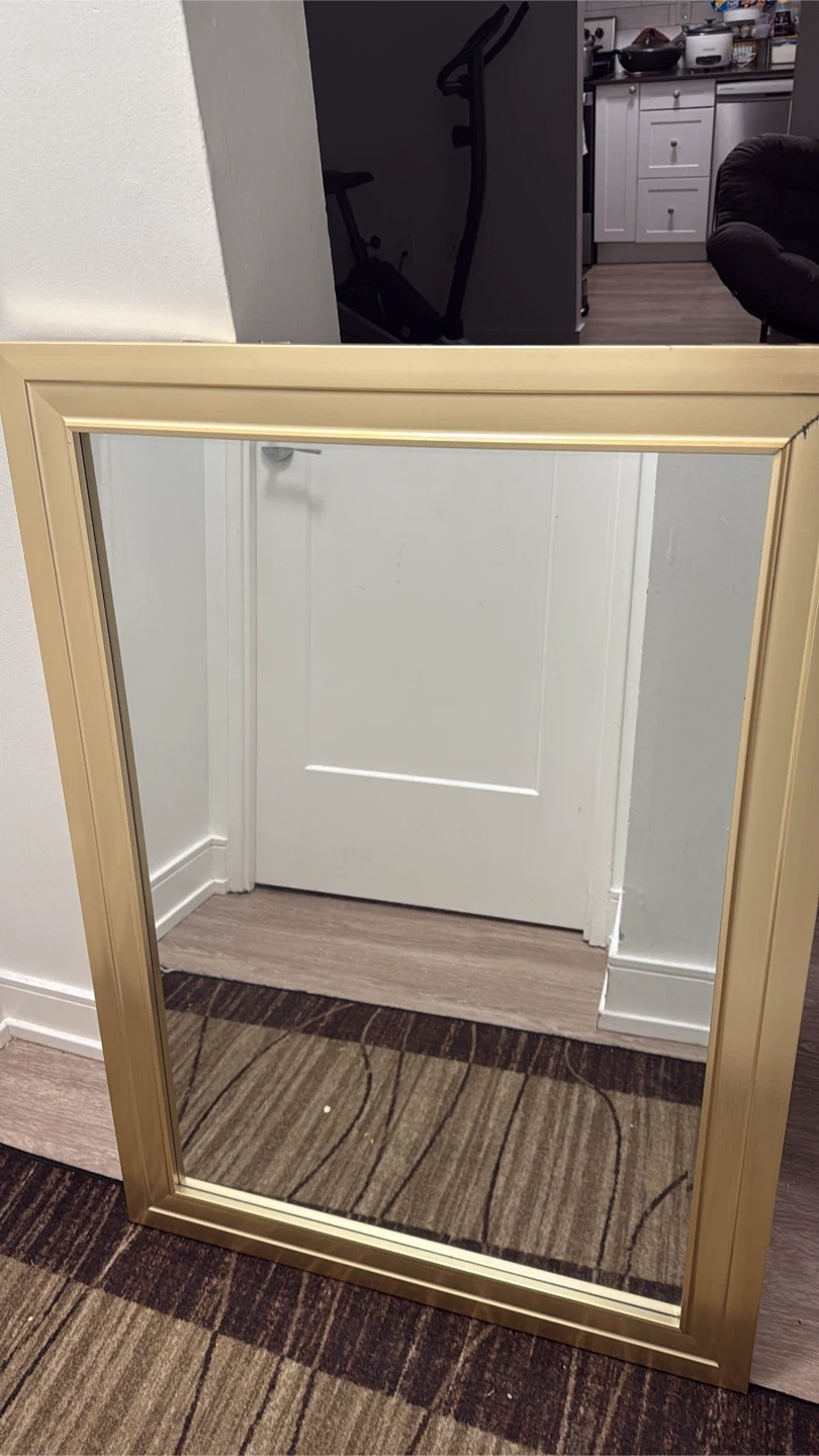 Selling a nice gold-framed mirror. It's in great shape and ready to hang! Please note the instructions on the back for hanging