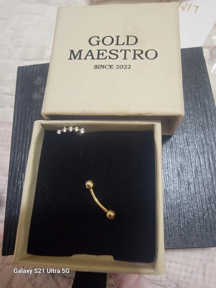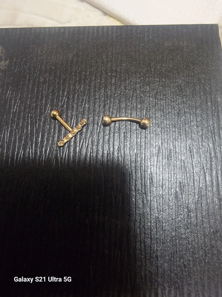 Only one left! Barbell is10kt gold. Barbell is standard size. Can be sold separately.