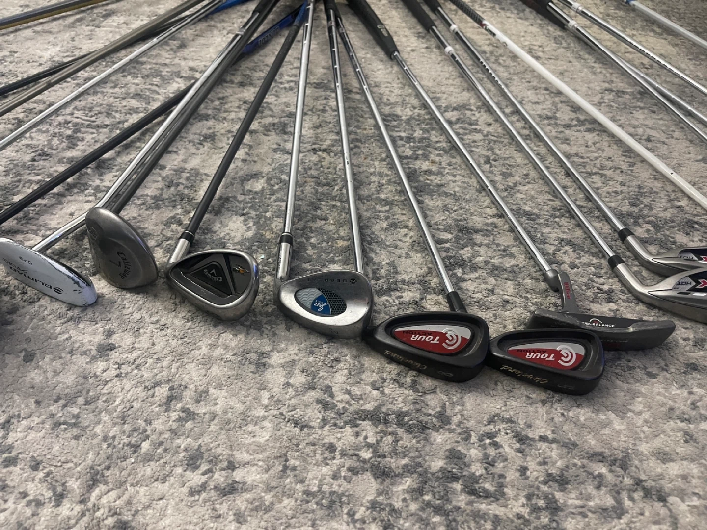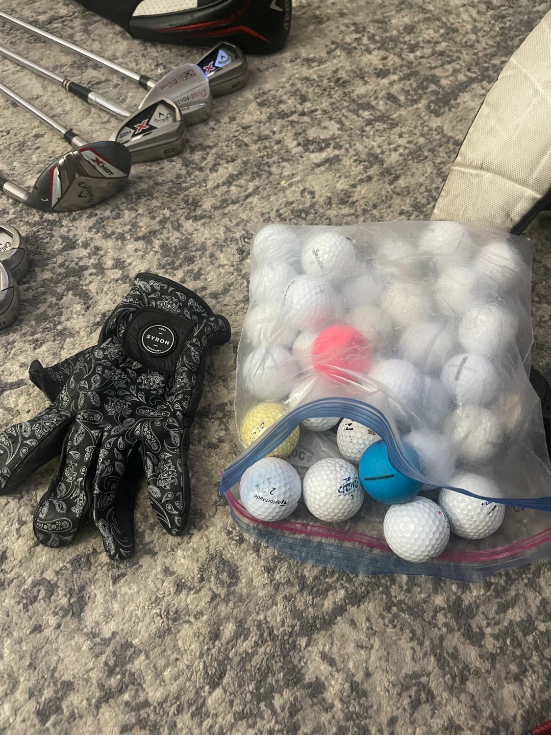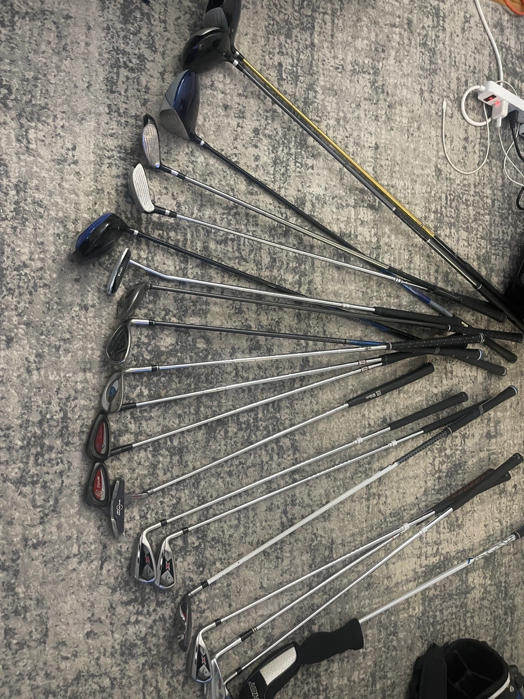 Selling a mixed set of golf clubs. Includes brands like Callaway, Dunlop, and X-Hot. Comes with two golf bags and a glove. Great for anyone looking to get into golf or upgrade their current set