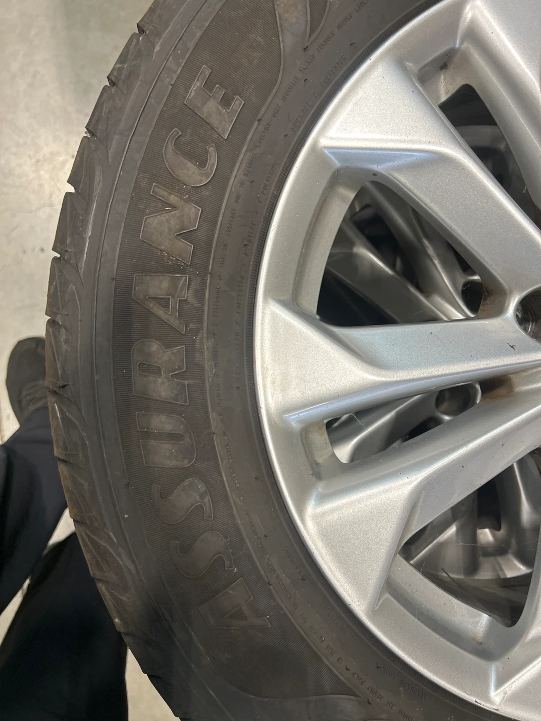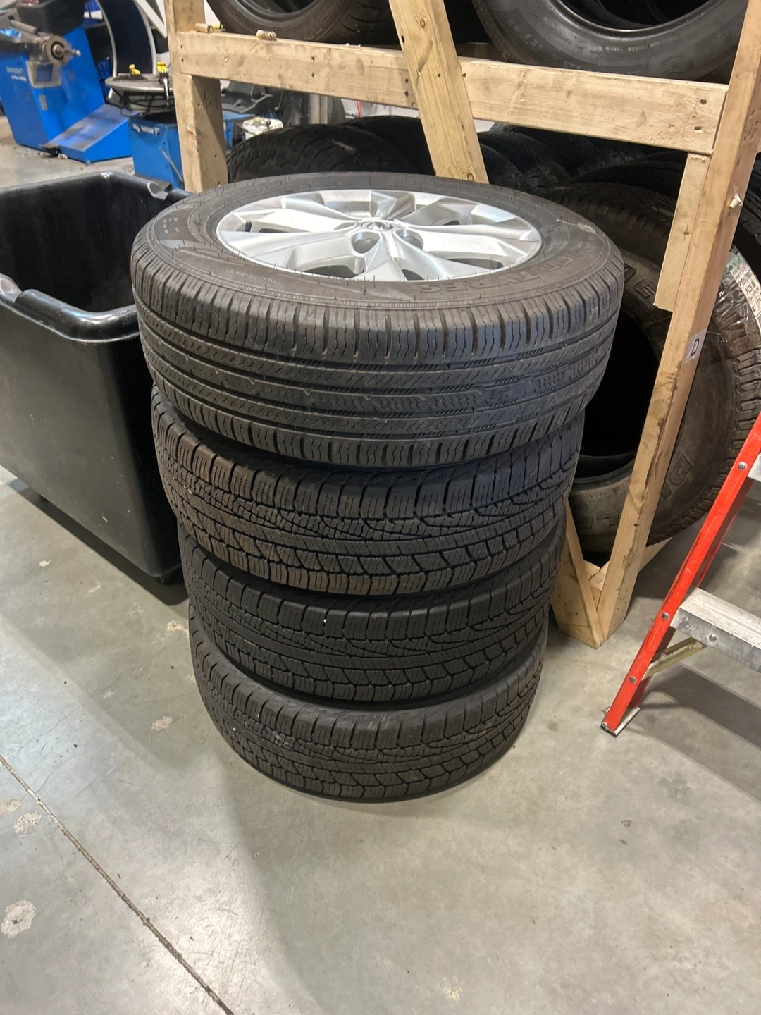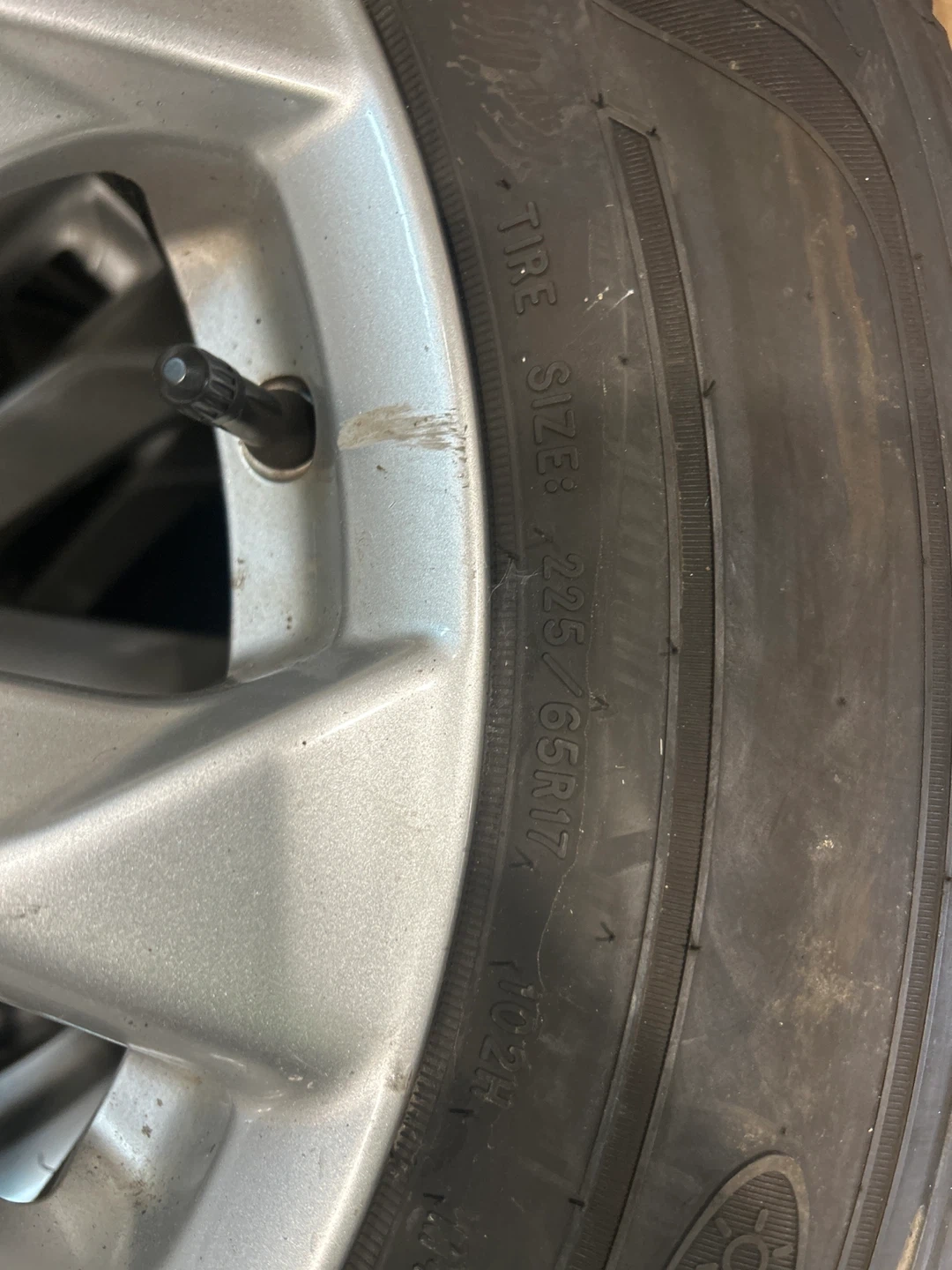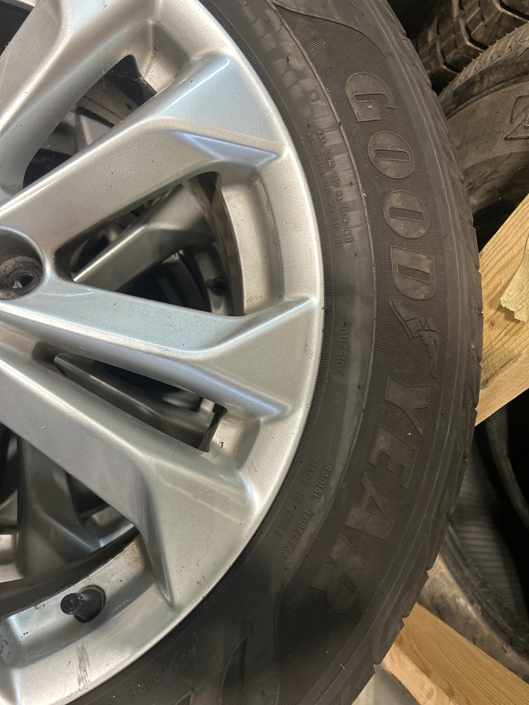 Selling a set of Goodyear Assurance WeatherReady tires. The size is 225/65R17. They are mounted on rims. 3 goodyear all weather tires and one nokian all season tire Treads 9/32 $225 each tire with rim