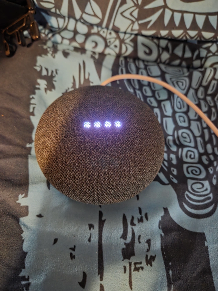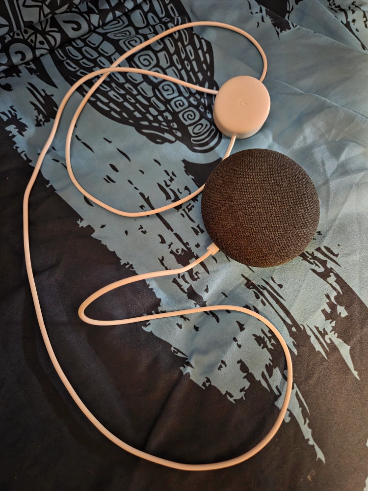 Selling a Google Home Mini! It's a great little smart speaker. It's in good condition and comes with the power cord. Perfect for playing music, setting alarms, and controlling smart home devices with your voice. Does not come with box or manual.