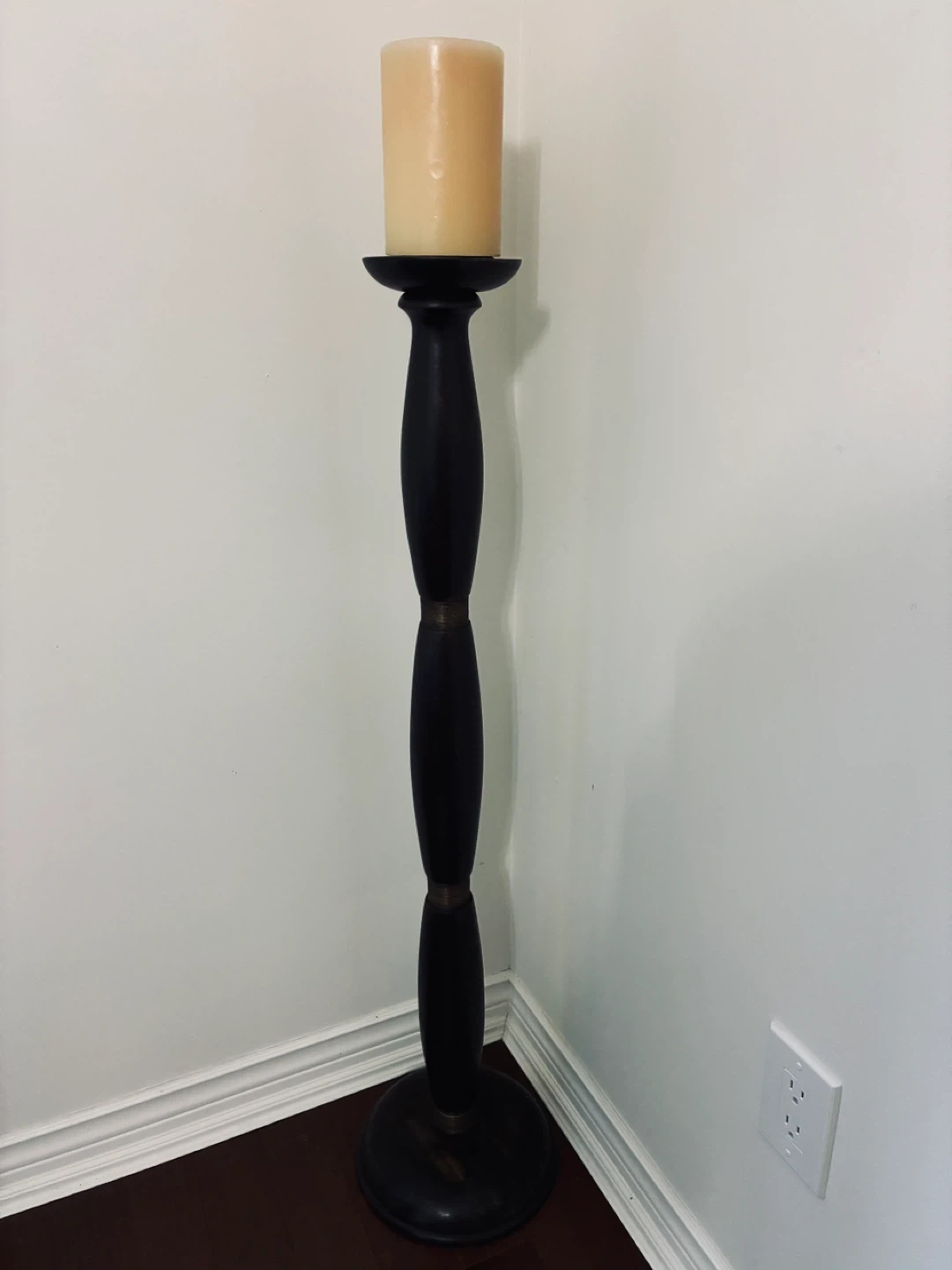 Selling a brown wooden candle holder. It's in great condition and would look great in any room! It's a simple way to add some warmth and style to your home decor