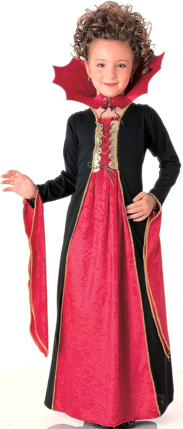 "Gothic Vampiress" children's Halloween costume for sale. Size Medium (USA Size 8-10). Age range: 5-7 years. Made by Rubies. 2 piece costume includes gown and collar. Used for Halloween but still in good condition otherwise. Comes from a non-smoking household.