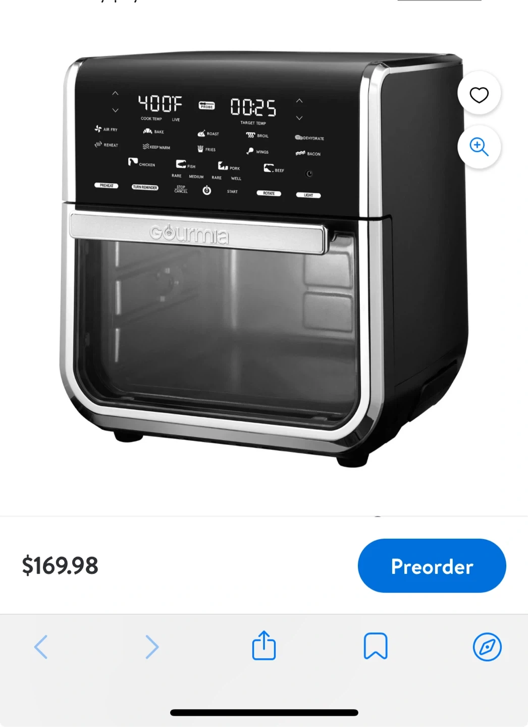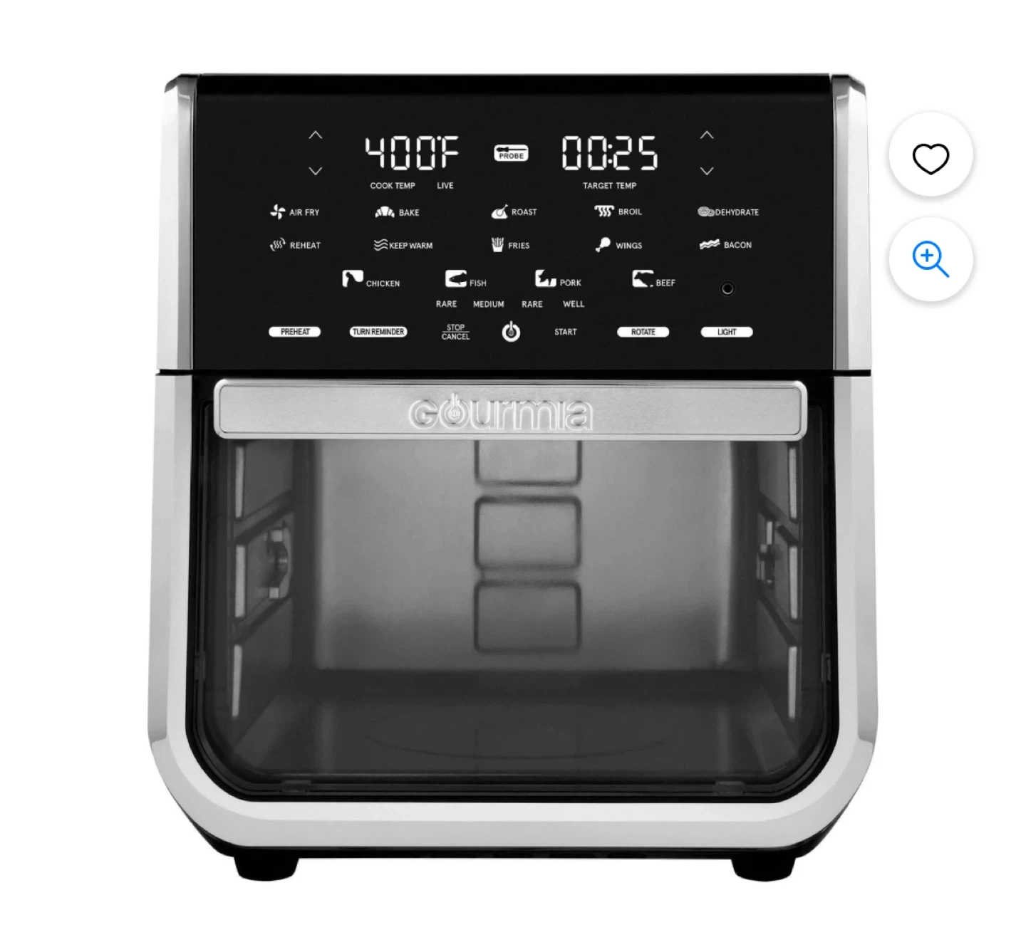 Selling a Gourmia air fryer oven. It's in great condition and ready for a new home! It features multiple cooking functions like air fry, bake, roast, and dehydrate. You can cook everything from chicken to fries to beef. It was originally listed for $169.98 Brand new in box