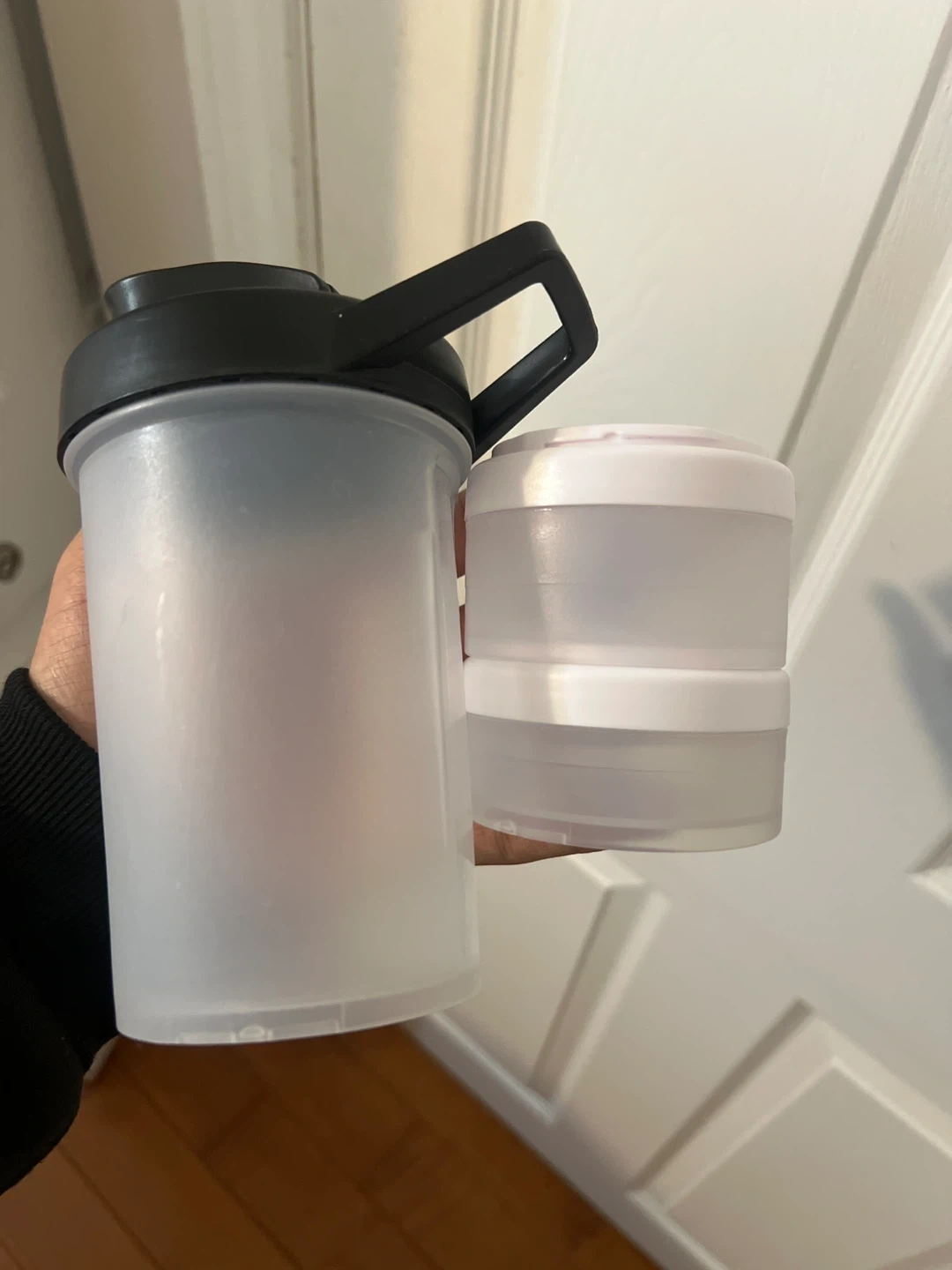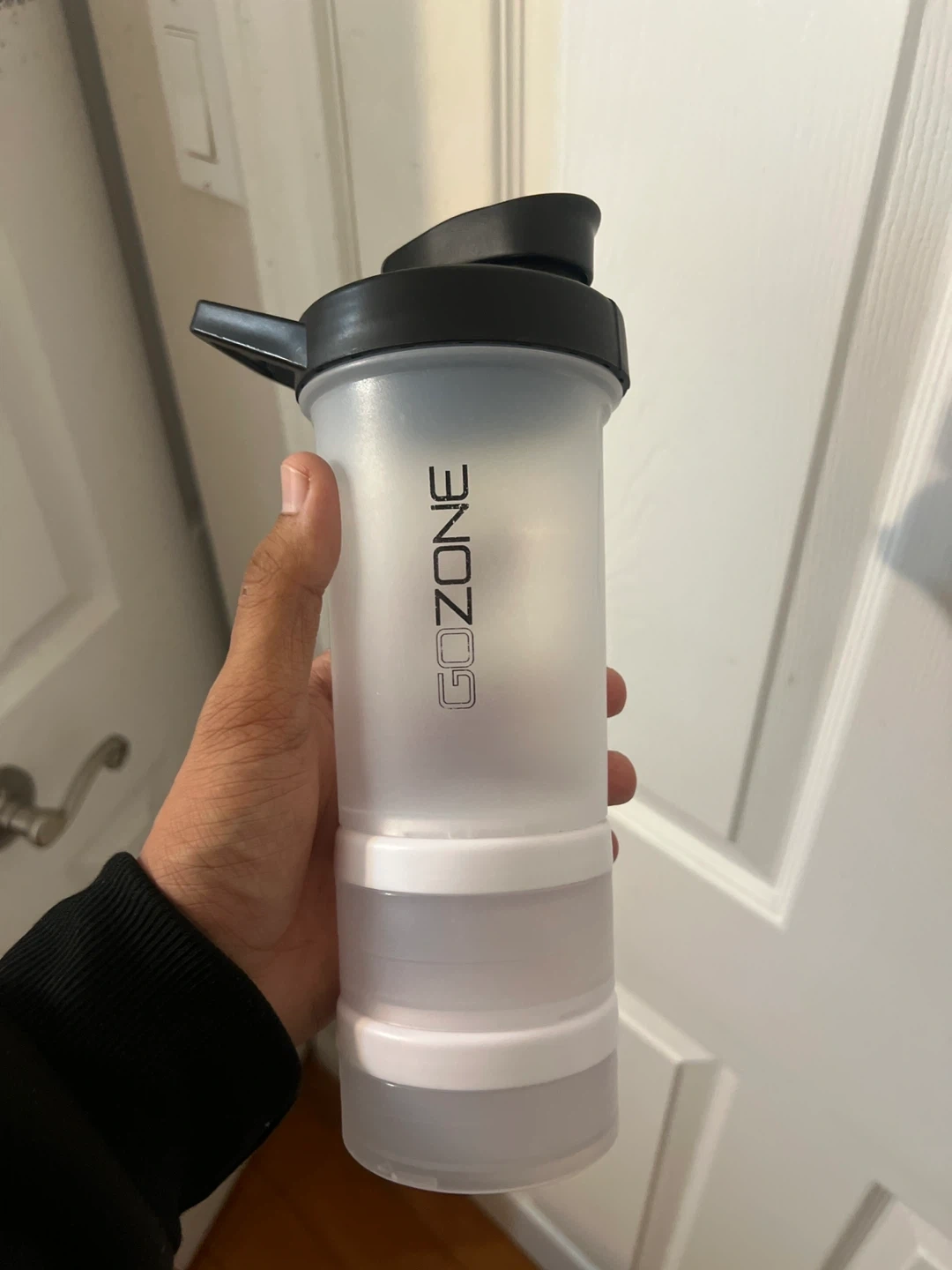Selling a GOZONE shaker bottle! It's in great shape and perfect for mixing protein shakes or pre-workout drinks. It also has a convenient storage compartment at the bottom for protein powder or supplements