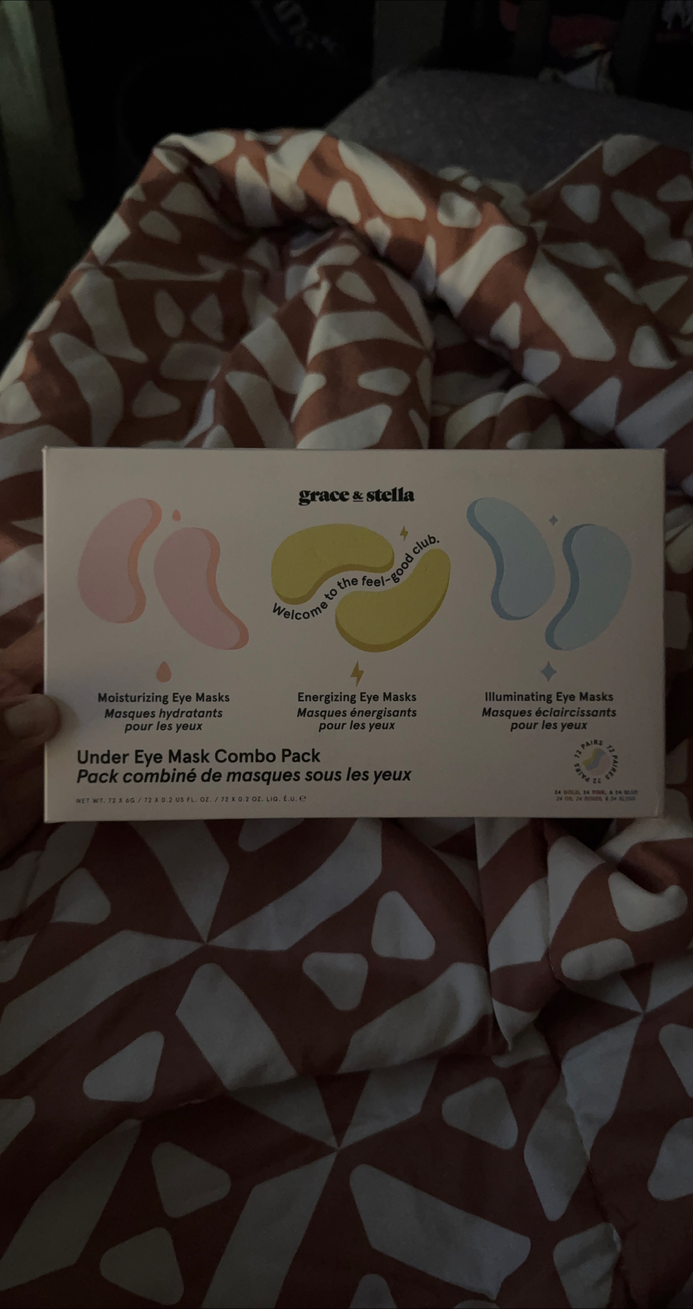 I'm selling a Grace & Stella Under Eye Mask Combo Pack! This pack includes moisturizing, energizing, and illuminating eye masks. Each mask helps to hydrate and refresh the under-eye area. You'll get 12 pairs of masks total!