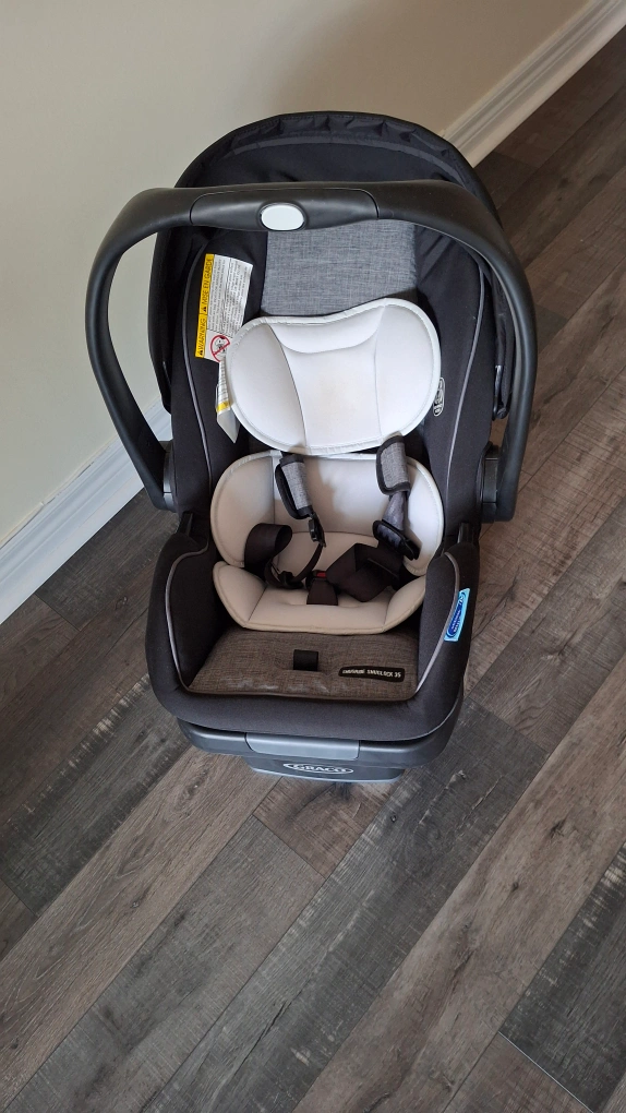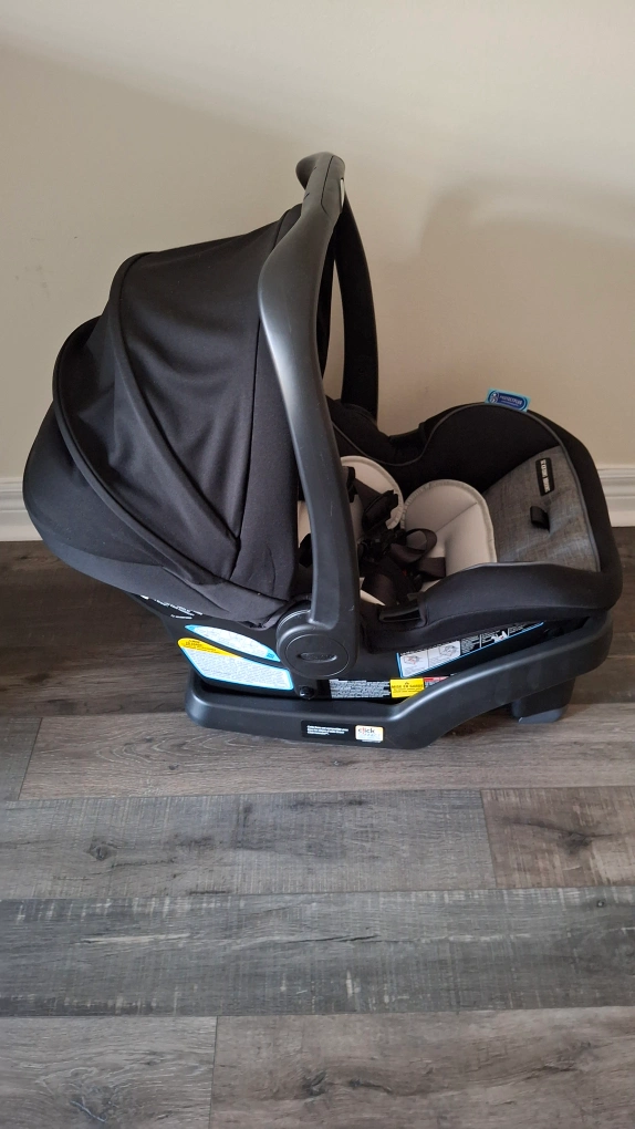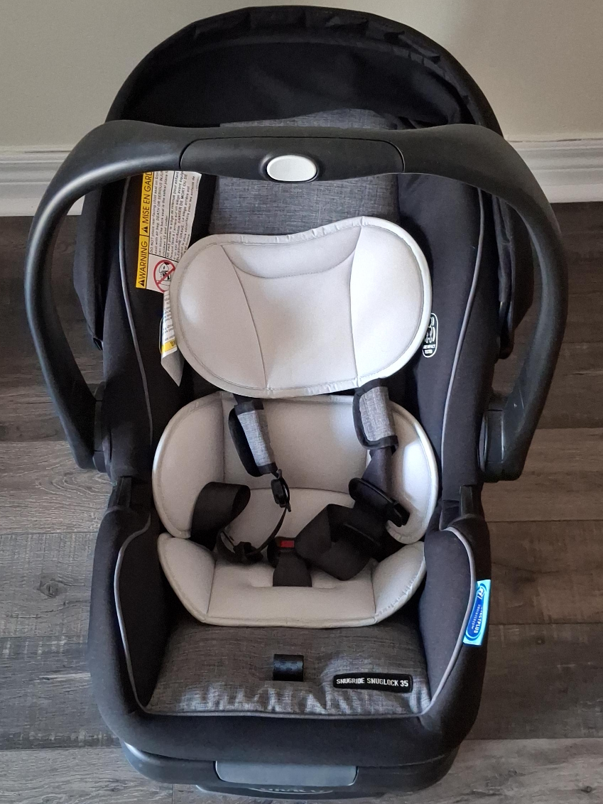 Selling a Graco SnugRide SnugLock 35 infant car seat! It's in great condition and ready for a new little one. It's black and grey, and the model name is SnugRide SnugLock 35. Used for 7 months roughly. Date of Manufacturing- 2022-12-27