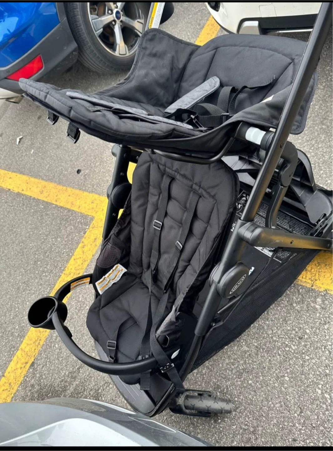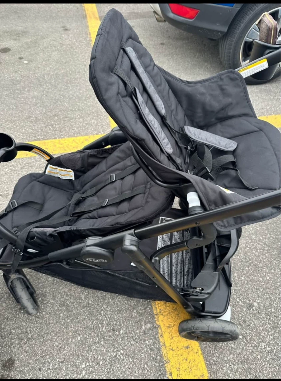 Comes with a canopy for both seats. Price negotiable. Suitable also for Graco click and connect infant car seats. Nice for twin babies OR an infant and a toddler. Still clean