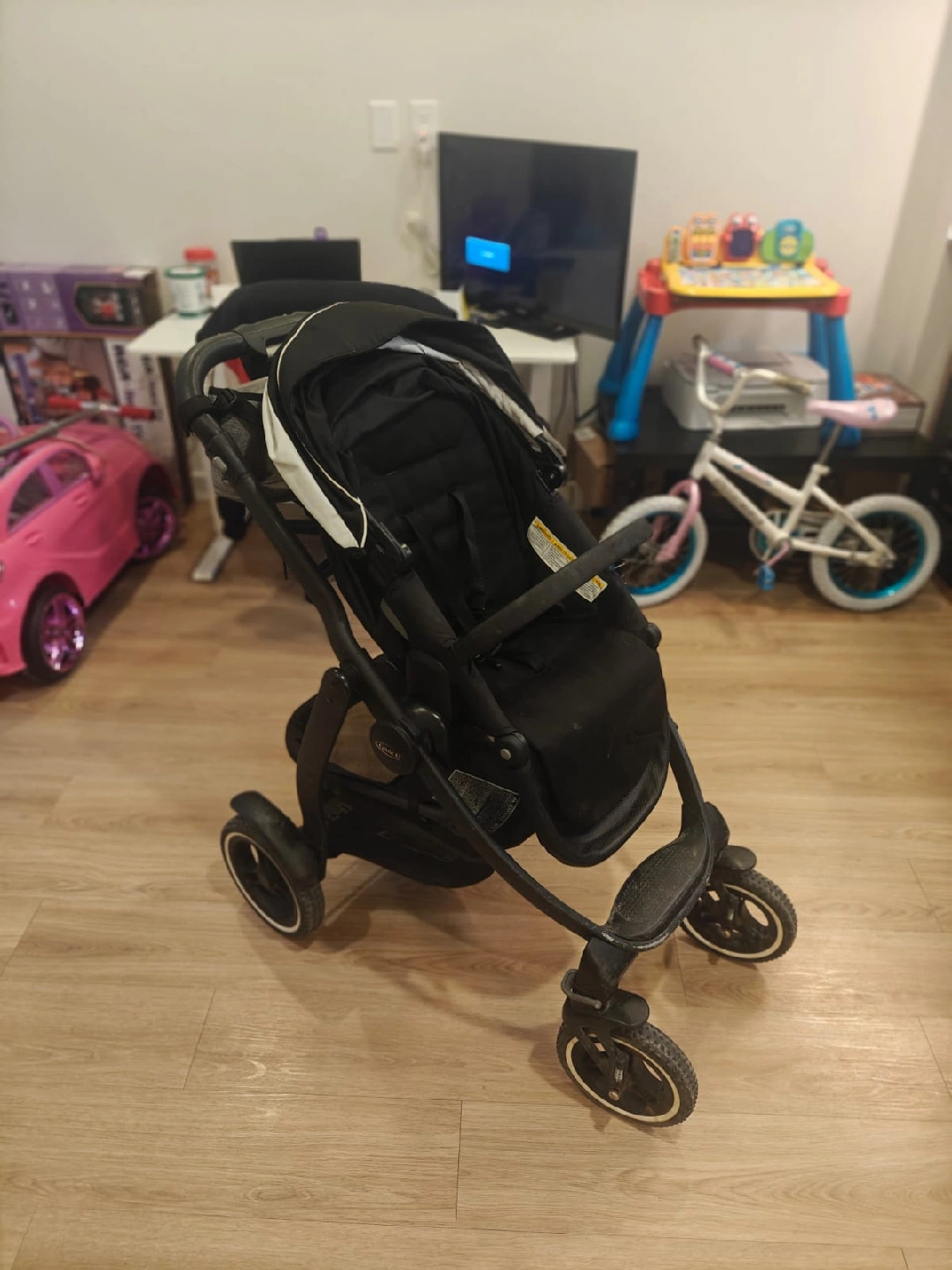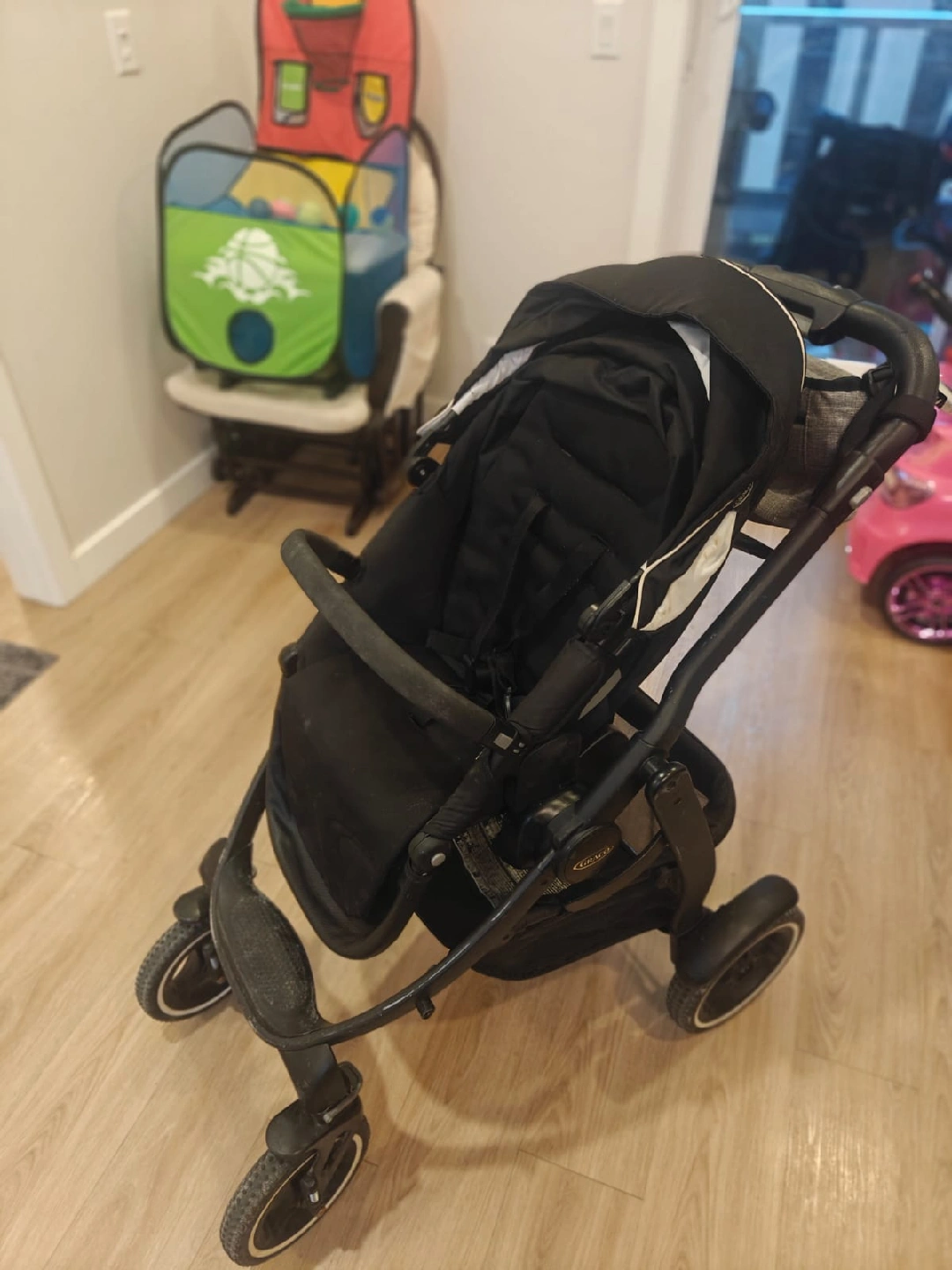 Selling a gently used Graco stroller in black. It's in good condition and ready for a new family! Perfect for walks around the neighbourhood or trips to the park. It's lightweight and easy to maneuver, making it a great choice for parents on the go