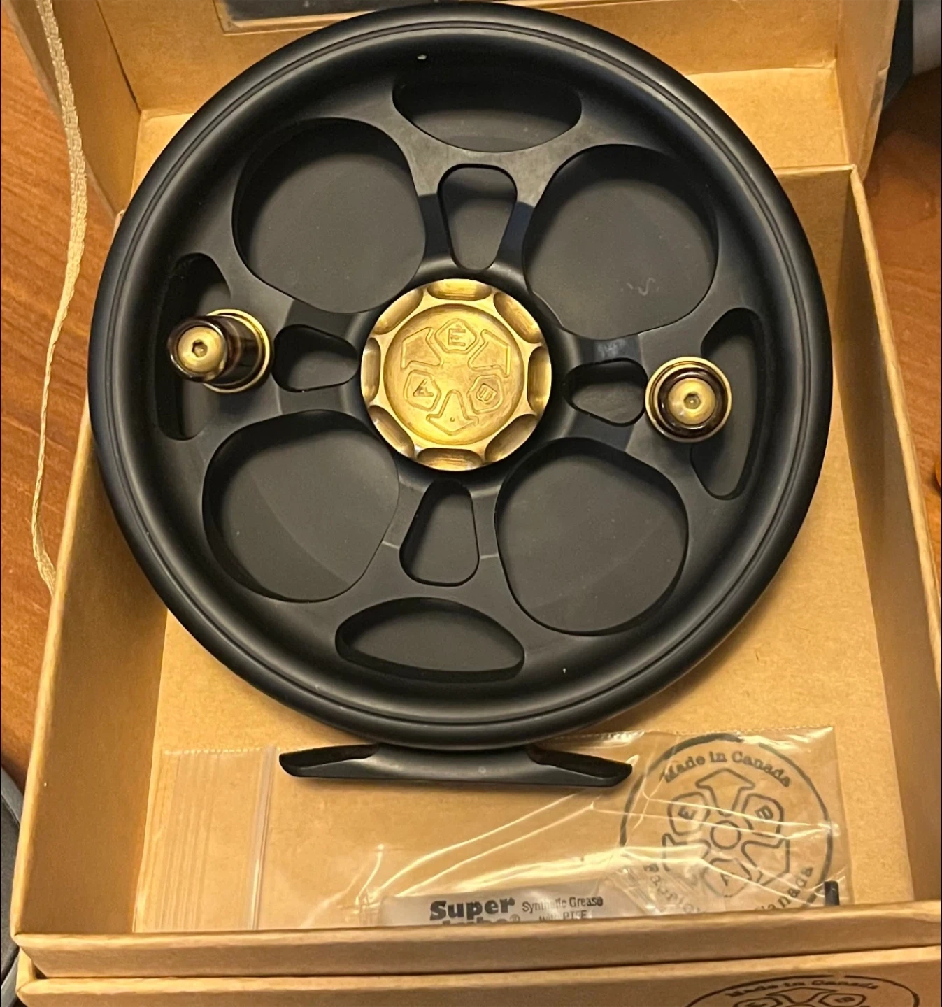 Great condition EBA Calibre II reel. It comes with its original box pouch and tool has an extra nickel center cap