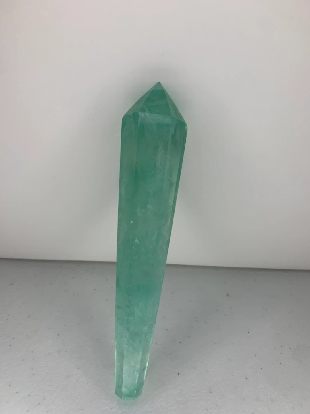 Selling a beautiful green fluorite crystal point. This piece would make a lovely addition to any crystal collection or as a decorative accent in your home. It has a lovely translucent green colour and a smooth, polished finish
