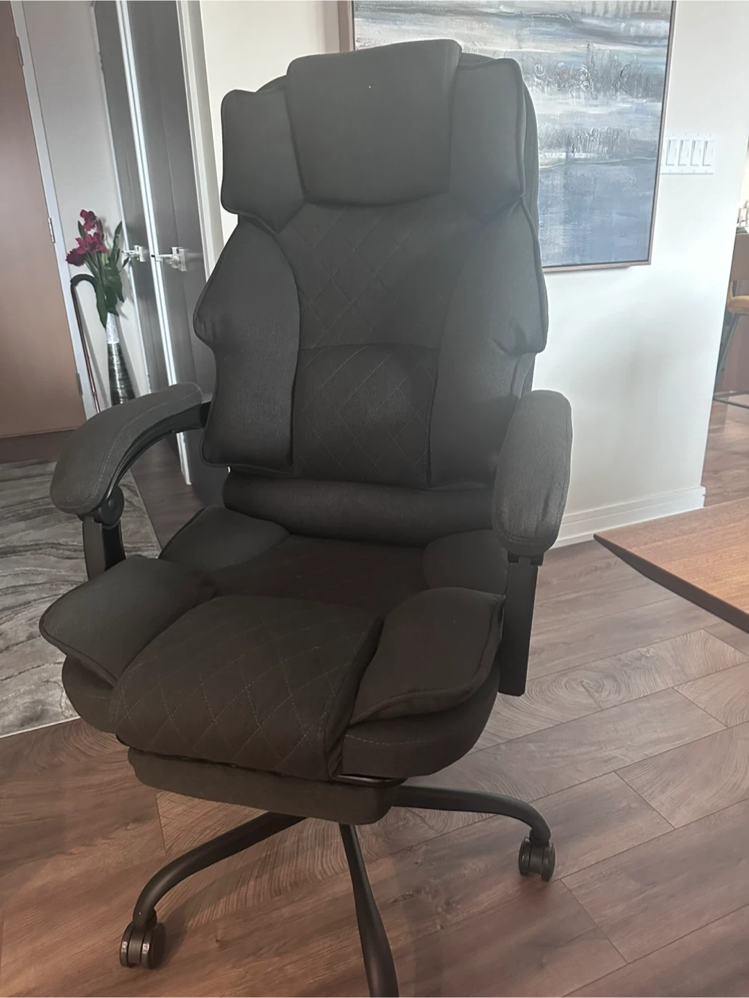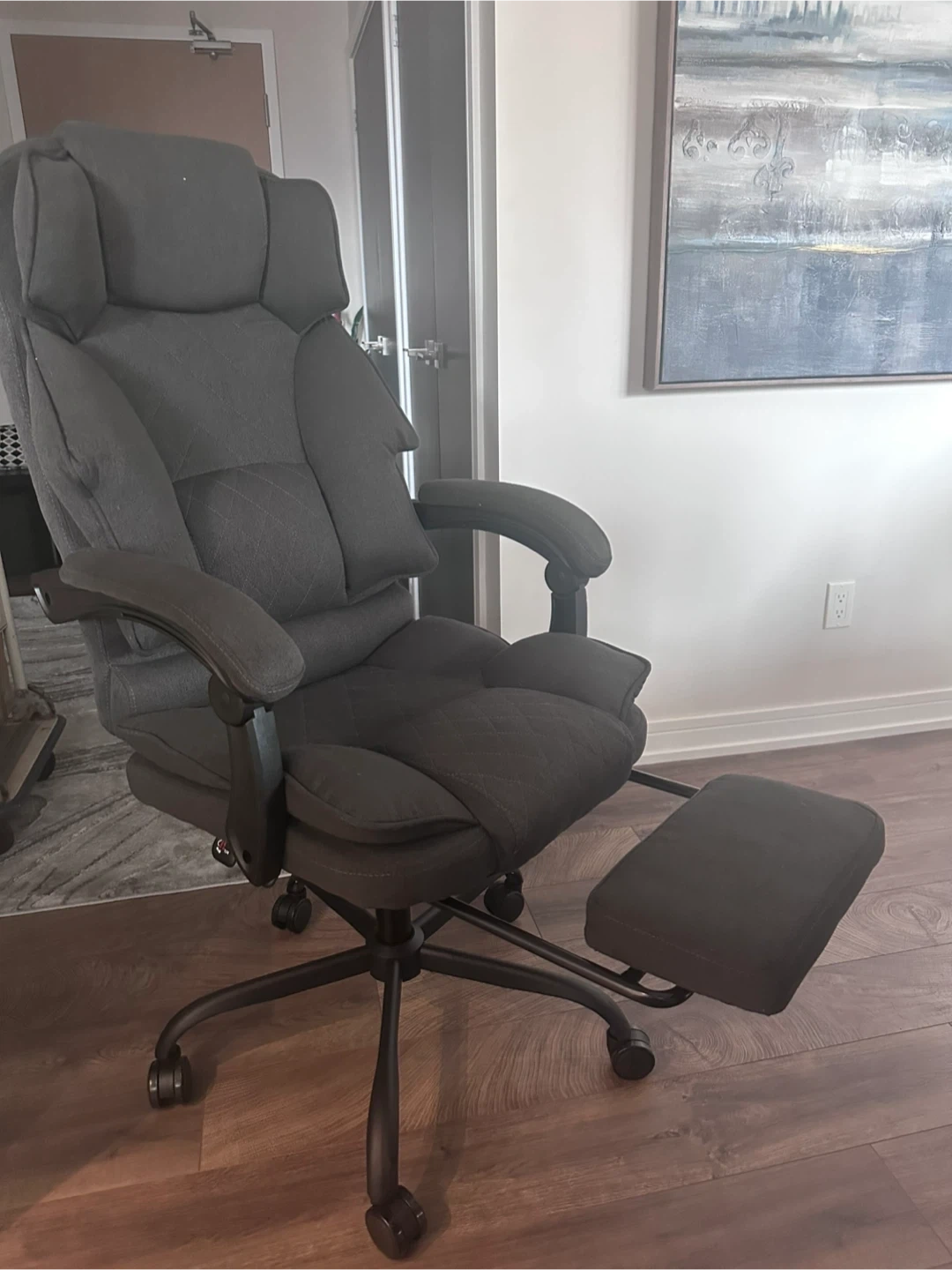 Selling a comfy grey ergonomic office chair! It's in great shape and features a convenient footrest for extra relaxation while you work or game. Perfect for your home office setup! This is Brand New and costs $210 plus tax on Amazon.
