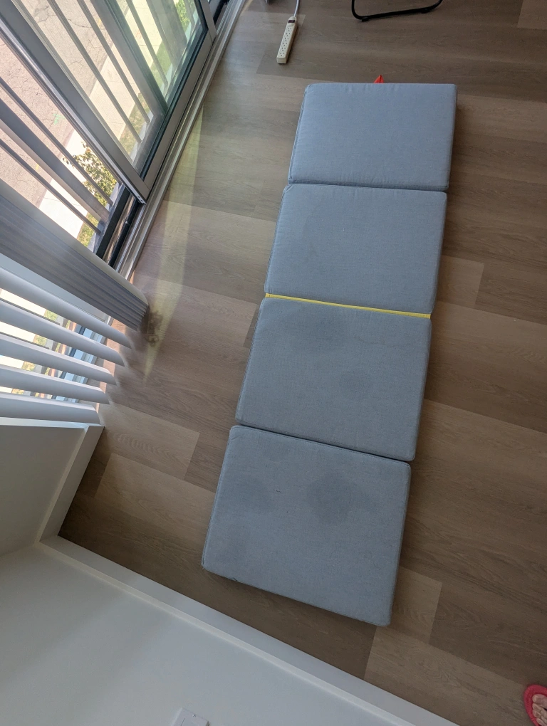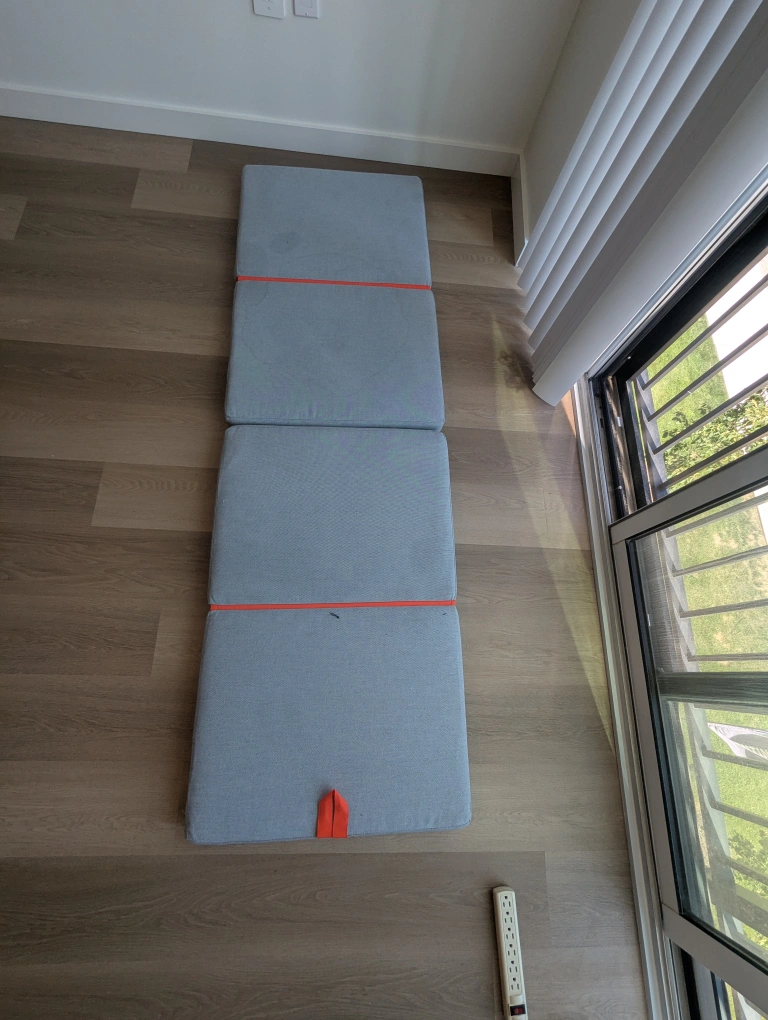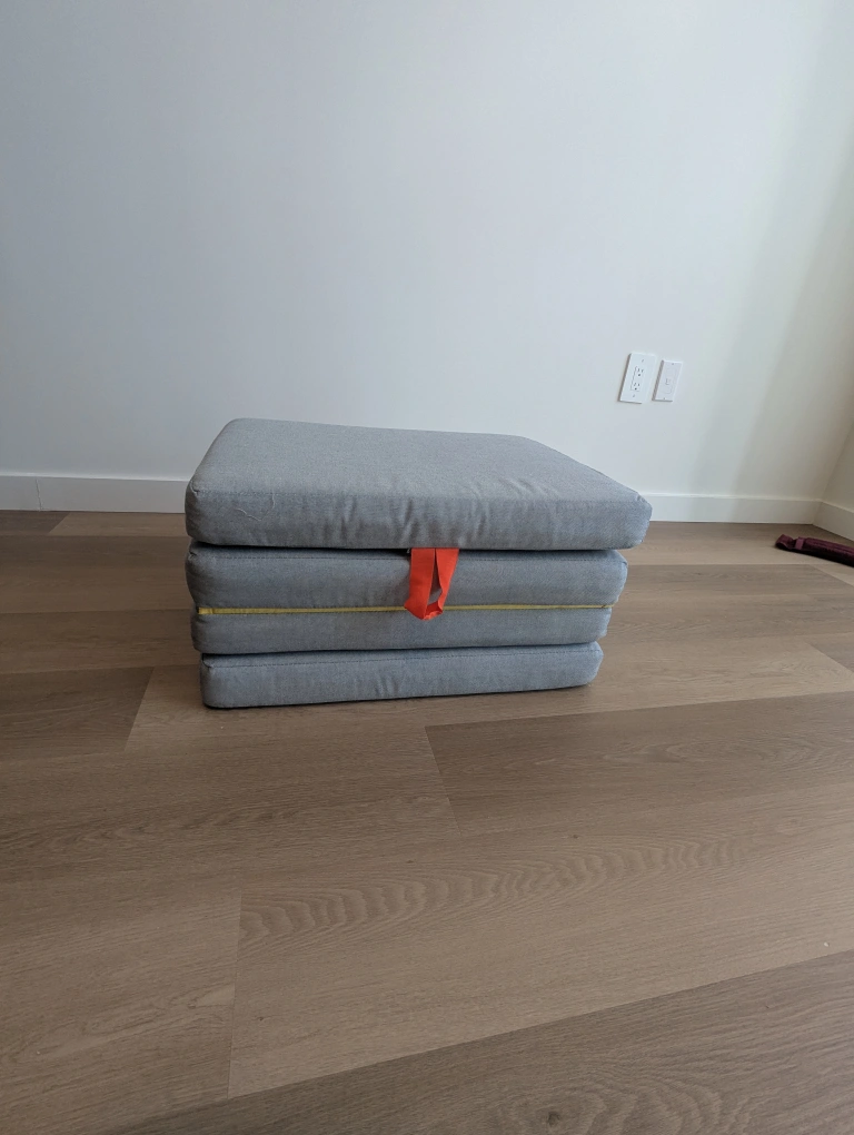Selling a folding mattress! It's a great space-saver and perfect for guests or small spaces. Folds up easily for storage when not in use, or as nice seat next to your sofa with a covering blanket. original price: $129 + tax The cover is not removable. manufacturer description for a similar item (ikea.com): "When folded, the pouffe is nice to sit on with the wall as a backrest, and folded out it becomes a comfortable mattress to hang out on ─ alone or with a friend. Perfect to sit on next to your child's bed when it's time to read a bedtime story. Easy to store under SLÄKT bed when folded. The fabric cover is easy to remove and wash. Designer Gustav Carlberg Article Number 605.936.16"