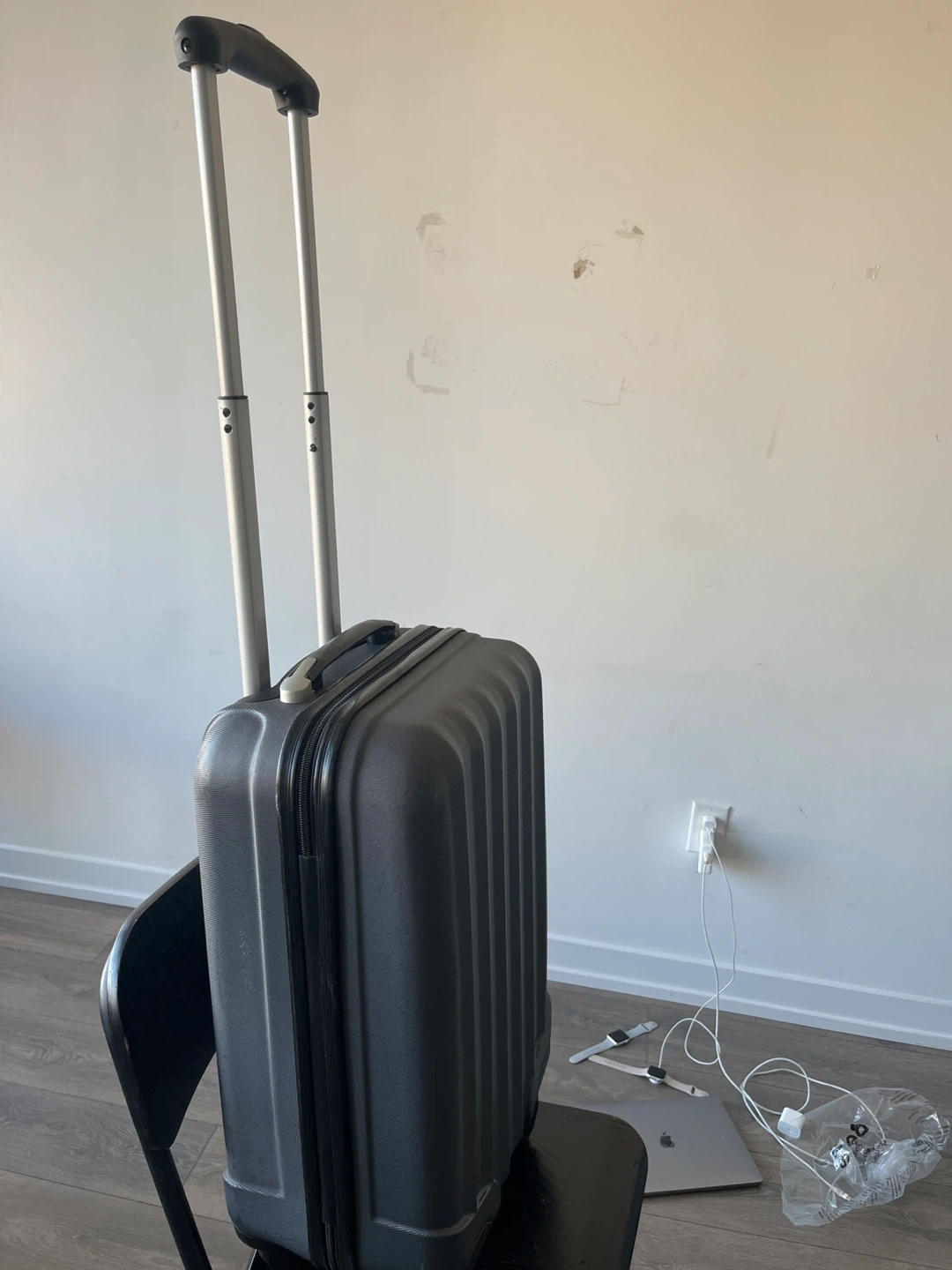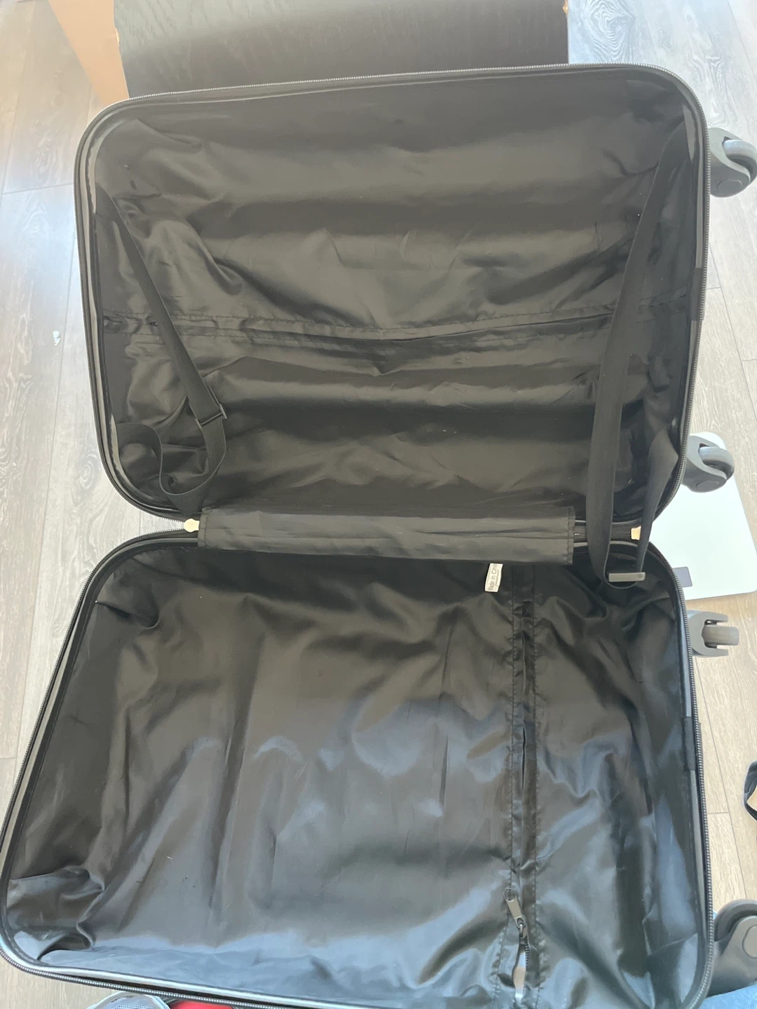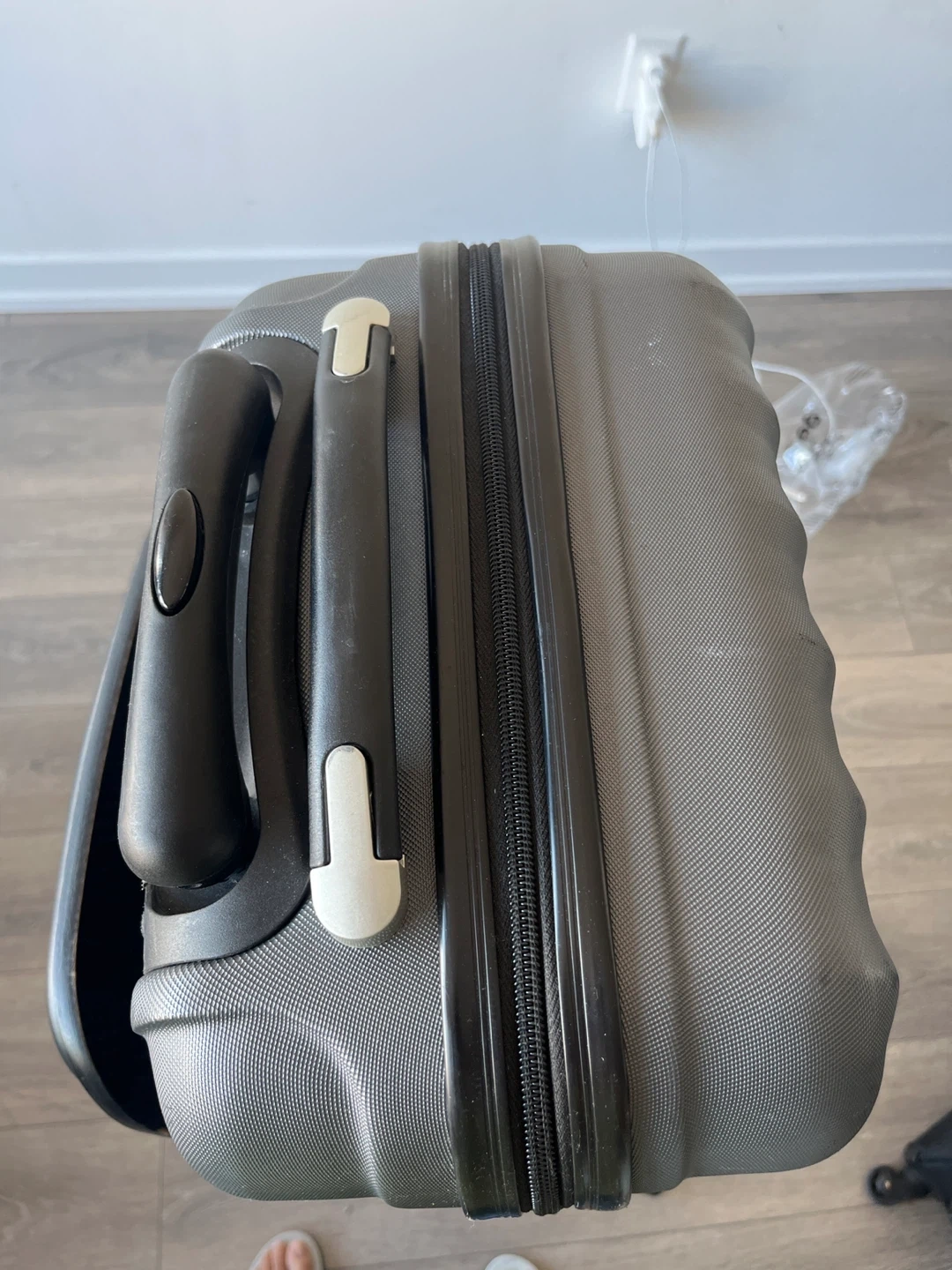 Selling a grey hardside carry-on suitcase. It's in great shape and ready for your next trip! Features a built-in combination lock for added security. Perfect for weekend getaways or business travel