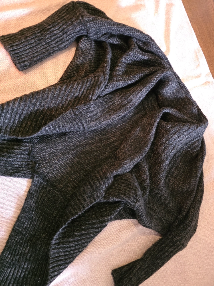 Selling a cozy grey knit cardigan! It's in great condition and perfect for layering on those cooler days. The knit texture adds a nice touch, and it's super comfy, can dress up many ways.