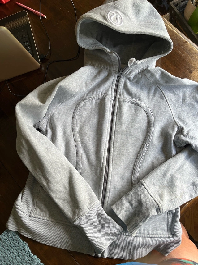 Like new Women’s grey Lululemon Scuba hoodie. In great shape. Size 10 Price $50. Non smoking home. PU Foxhaven Sherwood Park Please check my other listings.