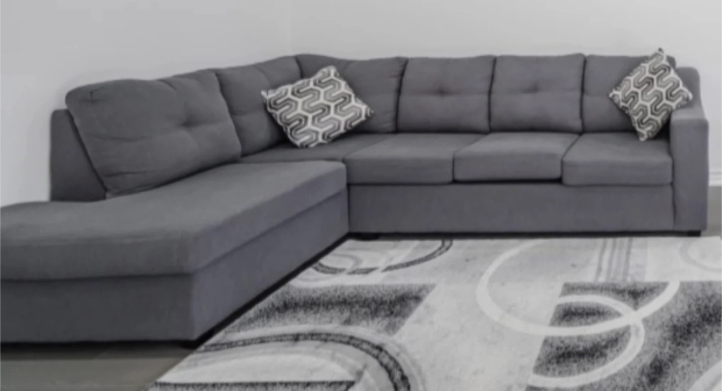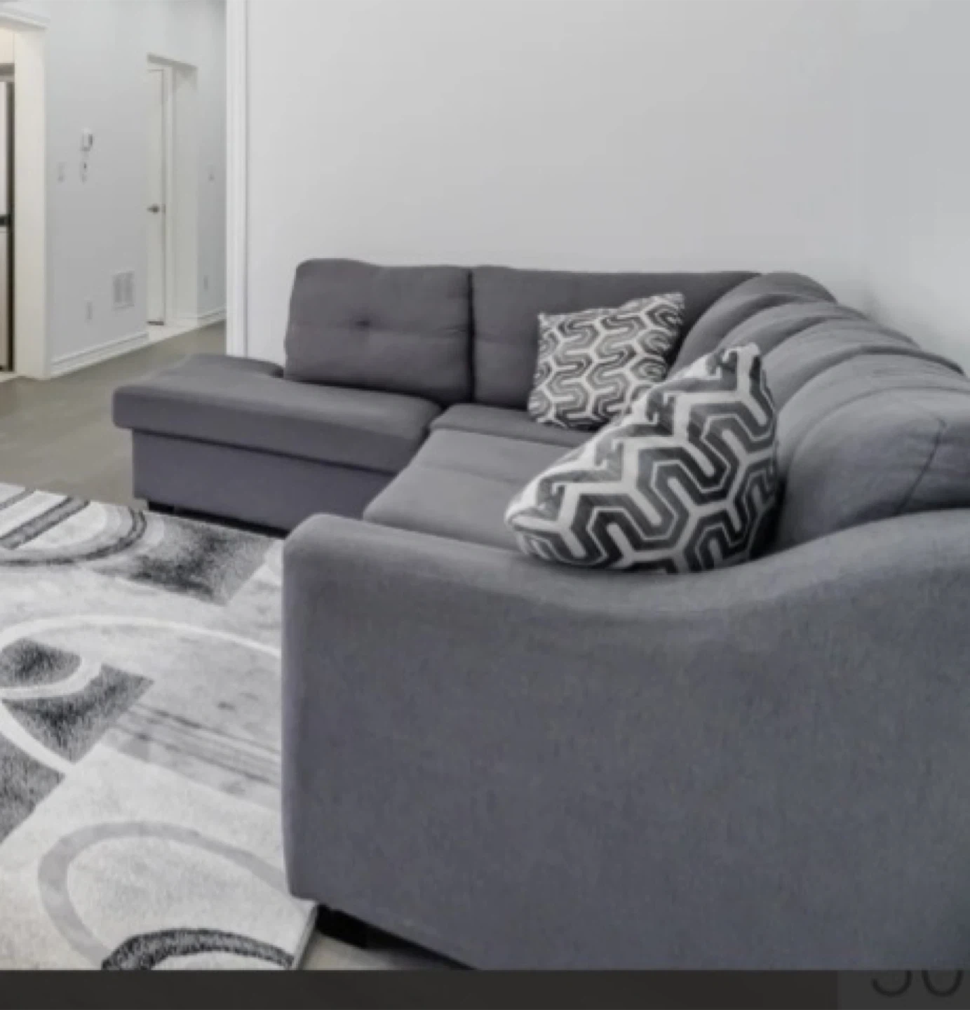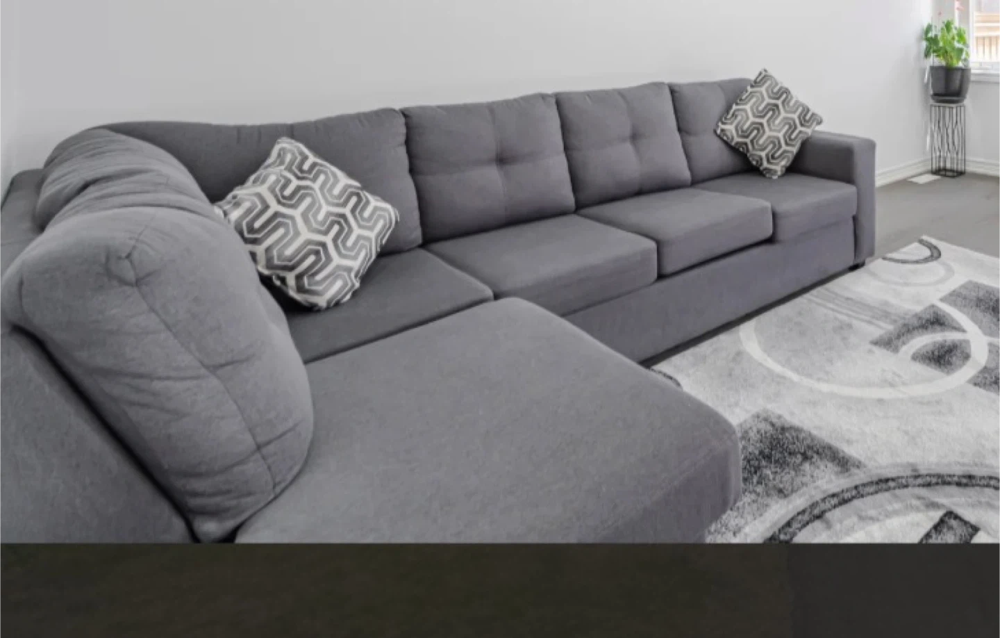 Selling a comfy grey sectional sofa! It's in great condition and would be perfect for a living room or den. The cushions are soft and supportive, making it a great spot to relax after a long day. It's a stylish and functional addition to any home!