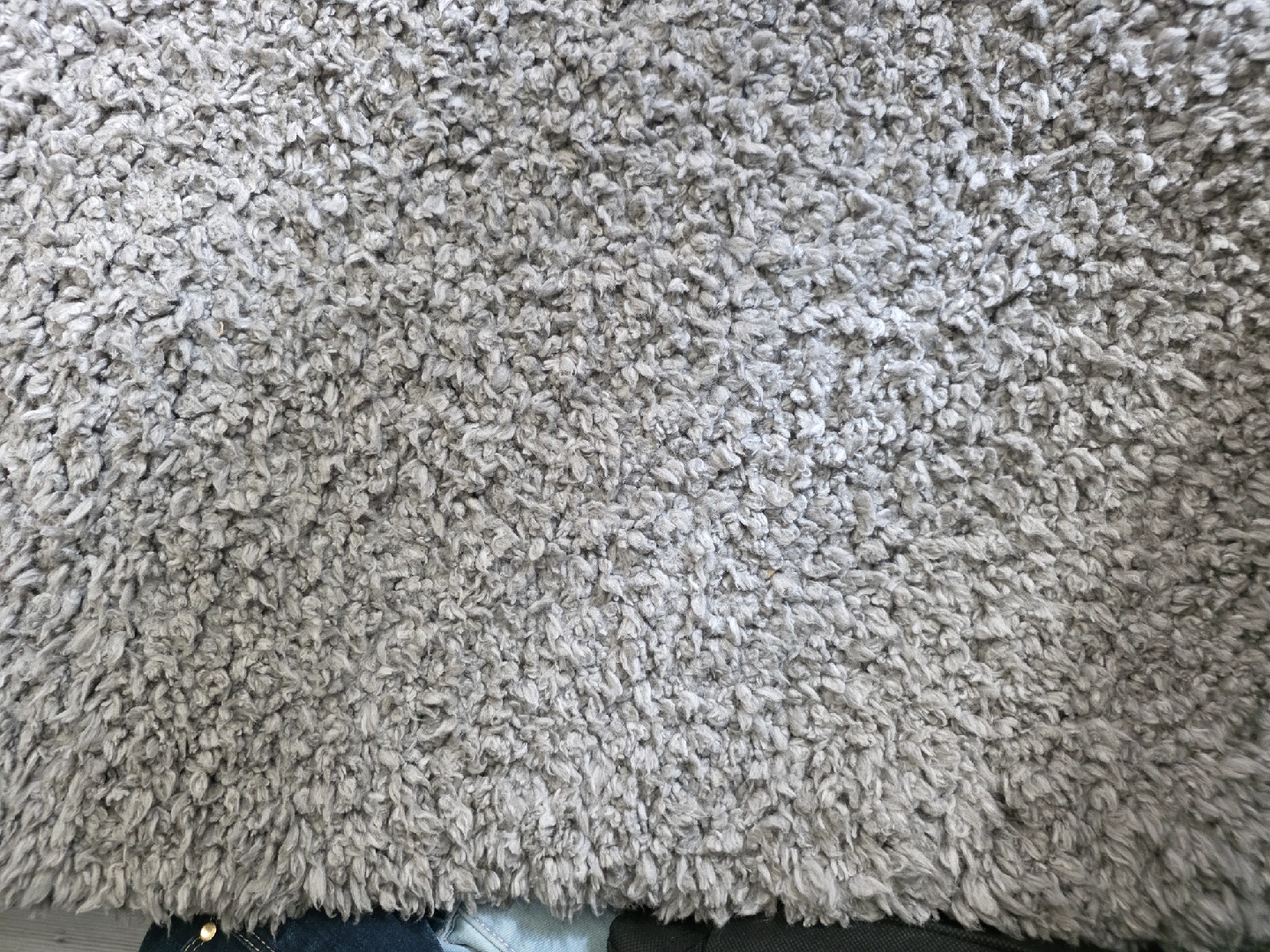 Grey shag carpet 7'10"×10'6". Used in hood condition, needs a good vacuum. Middle area is a bit flattened but perfect for under a bed or dining table.