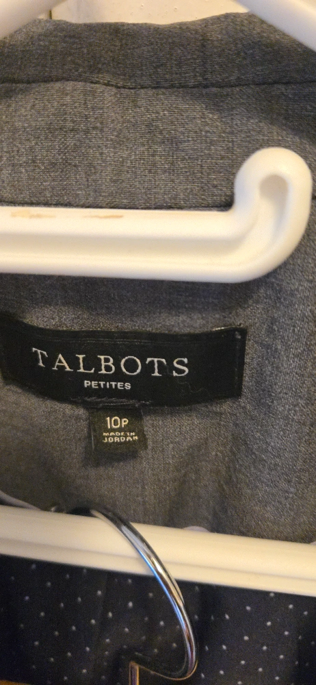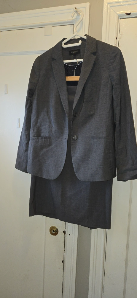 Selling a Talbots Petites grey blazer, size 10P, and a Shape Fx skirt size 12. skirt has spandex so it stretches. this fits like a medium size