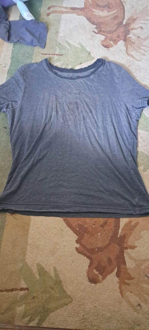 Here's a comfy t-shirt in a grey colour. It's in good condition and ready for a new home! I cant tell the size but id say it s either a large or medium and it has a design but its hard to see it