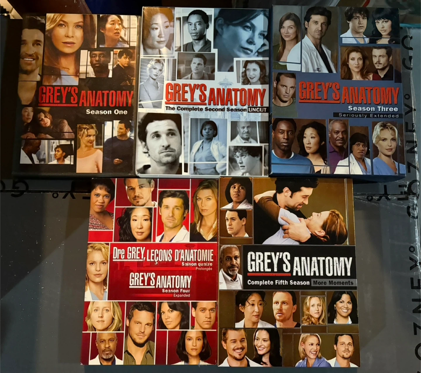 Selling the first five seasons of Grey's Anatomy on DVD! All seasons are in great condition and ready for a new home. Perfect for binge-watching or reliving your favourite moments from the early years of the show