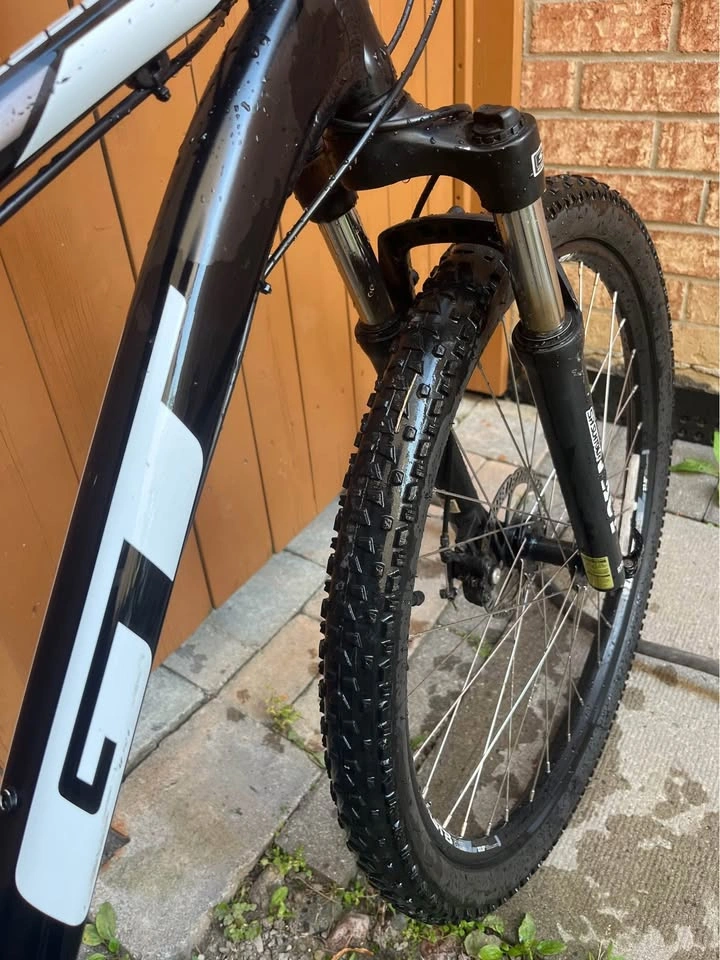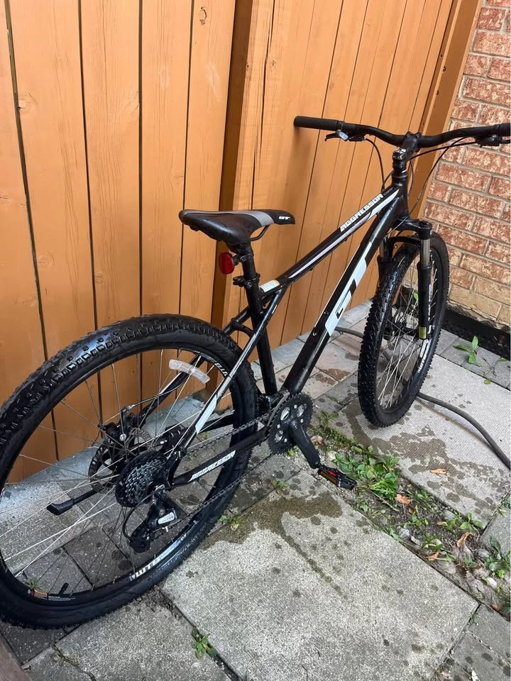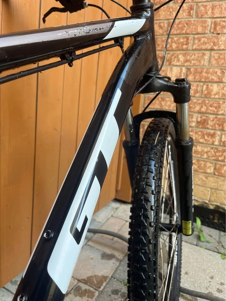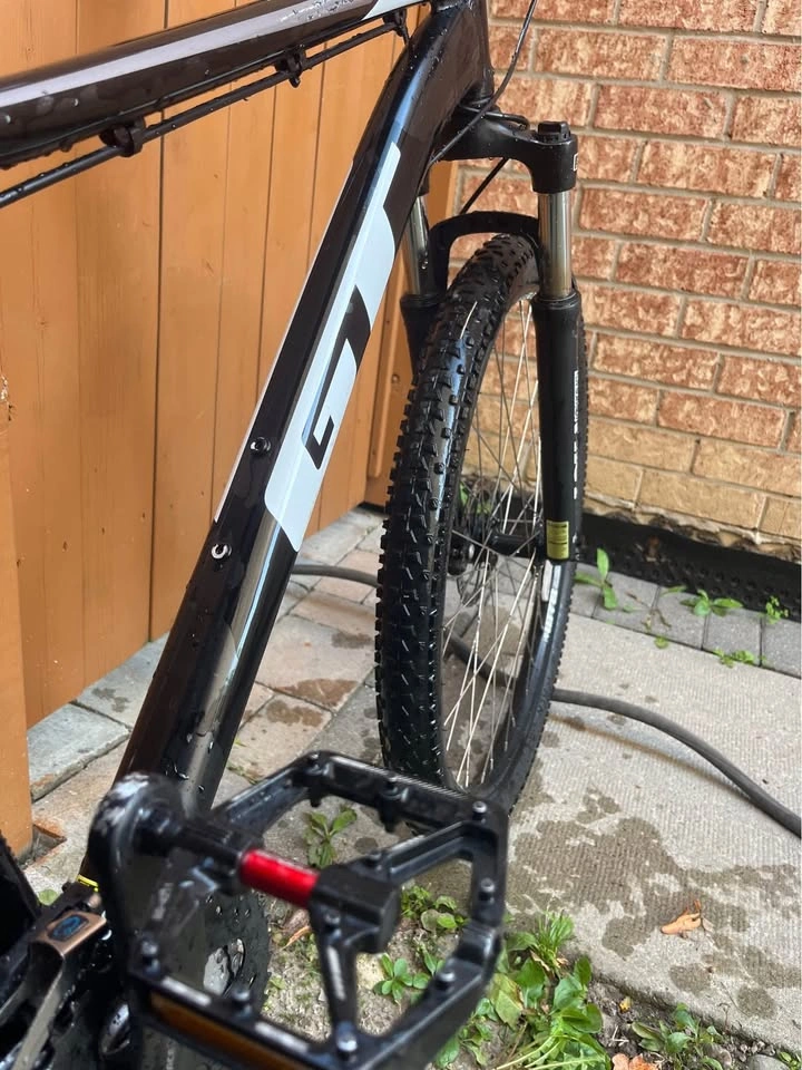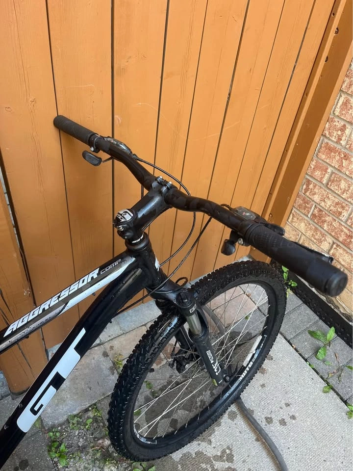 Recently tuned up by mechanic Parts I still have Chain lubricated and degreased one day ago Parts list: Brand new Peddles with tiny pegs Brand new kickstand Brand new grips (never used not put in bike yet New bike bell not put on yet For sale: Modded 2019 GT Aggressor Comp – $550. Selling my GT Aggressor Comp, a solid and reliable hardtail mountain bike that’s great for trails, commuting, or just cruising around. It’s built with GT’s tough Triple Triangle aluminum frame for strength and comfort, and comes with an SR Suntour XCT suspension fork (100mm travel) to soak up bumps. • Drivetrain: Shimano 3x7 speed (21 gears) – smooth shifting and plenty of range for climbs or fast flats. • Brakes: Tektro mechanical disc brakes – strong stopping power in any weather. • Wheels: 27.5” double-wall rims with all-terrain tires for both trail and street use. The bike is in great shape, well-maintained, and ready to ride. Perfect for beginner to intermediate riders or anyone looking for a quality MTB without breaking the bank. 💲 Price: $500 OBO (reasonable offers welcome) 📍 Location: Richmond Hill Message me if you’re interested or want to come check it out!