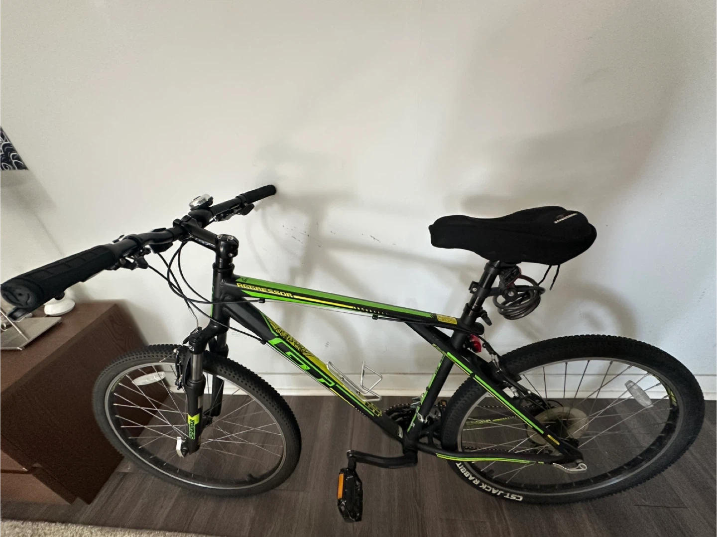 Selling a GT Aggressor mountain bike in a stylish green and black colour scheme! It's ready for some off-road adventures or just cruising around town. This bike is in good condition. Perfect for someone looking for a reliable and fun ride Size:Large Tire:26