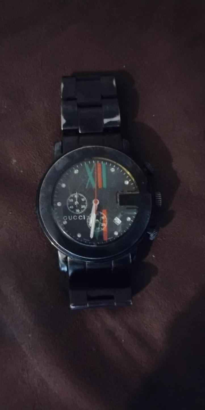 Selling a Gucci men's chronograph watch. It features a black band and a stylish design. Perfect for everyday wear!