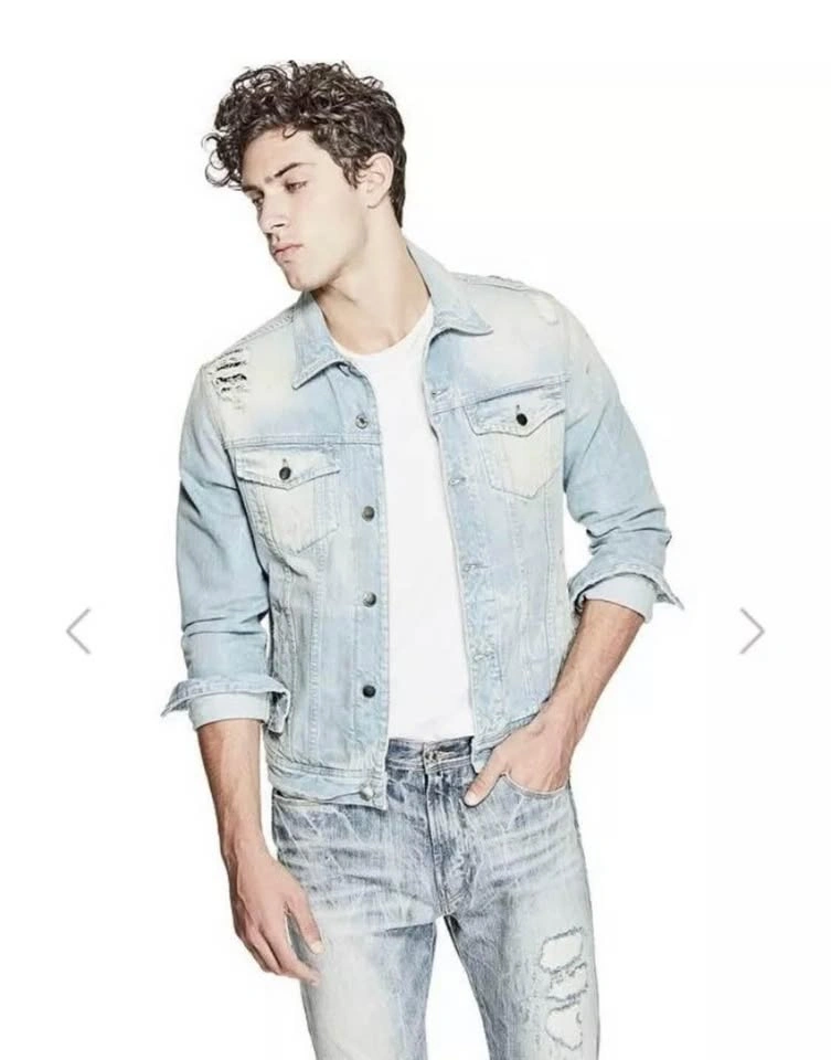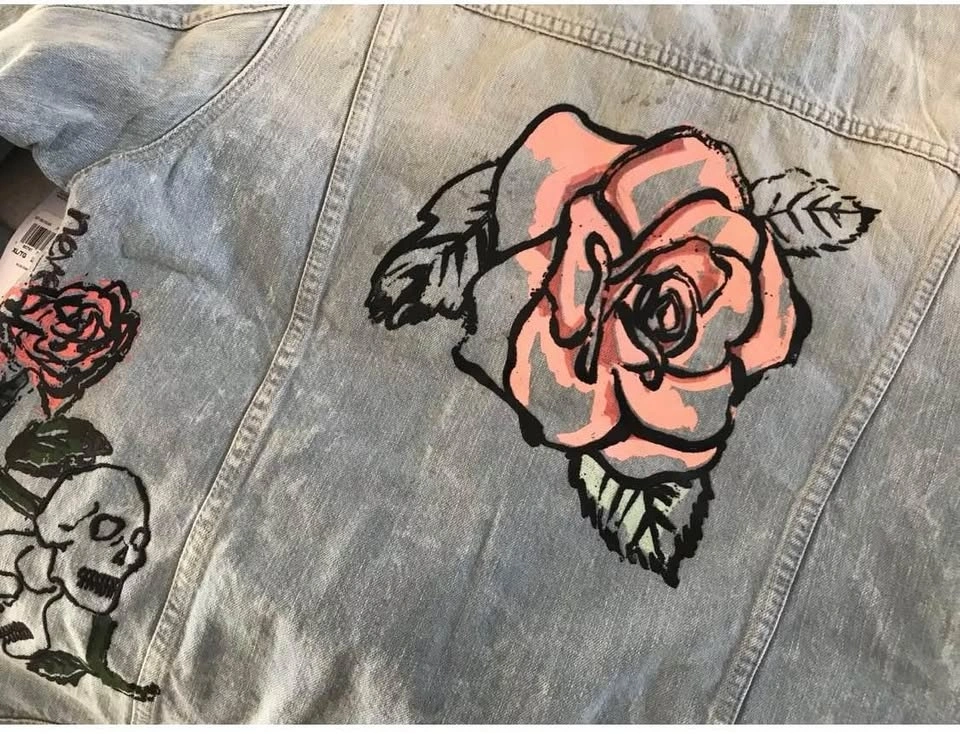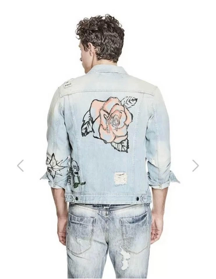 GUESS Brand Men’s Dillon Distressed Denim Jacket Painted Rose & Sculls On Back Sz.XL Measurements : Armpit to Armpit - 23.5 inches Shoulder to Cuff - 26 inches Waist width - 21 inches Shoulder to Shoulder - 19 inches Length - 25 inches Brand New item with tags attached and never worn. Hip Hop, Street, Skate style gear.