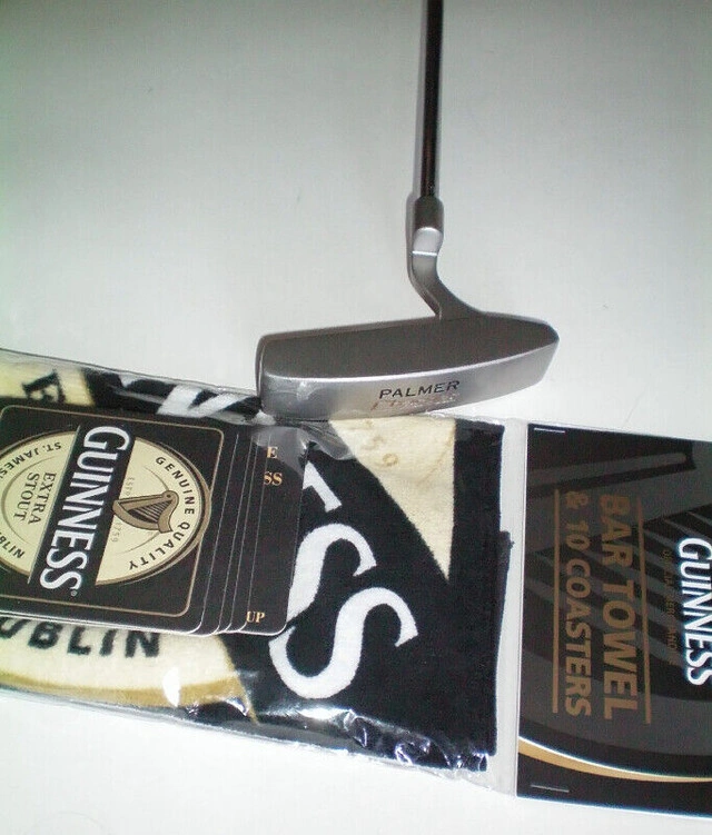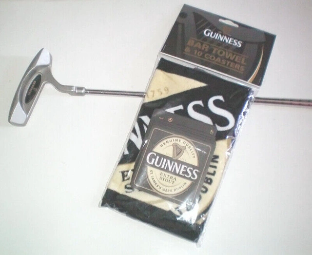 Guinness Bar Towel and 10 Coasters NIP - Part of the Guinness Official Merchandise Collection. They are both designed with the traditional extra stout label. Perfect for spills or drying hands. Can be used in a bar or as decoration. Made with absorbent fibres. Bar Towel: - 100% Cotton - 50cm x 24cm Note: Putter in picture has already been sold Show your friends and family what kind of Guinness Man you are