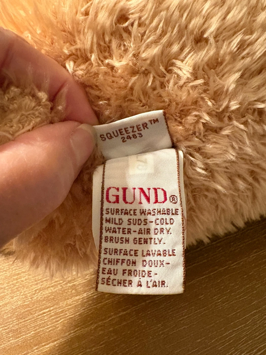This is a cute 12 inch Gund Squeezer teddy bear. It is surface washable with mild suds and cold water. Air dry and brush gently to keep it looking its best. Smoke and pet free home. Niagara Falls North end location. Cash only