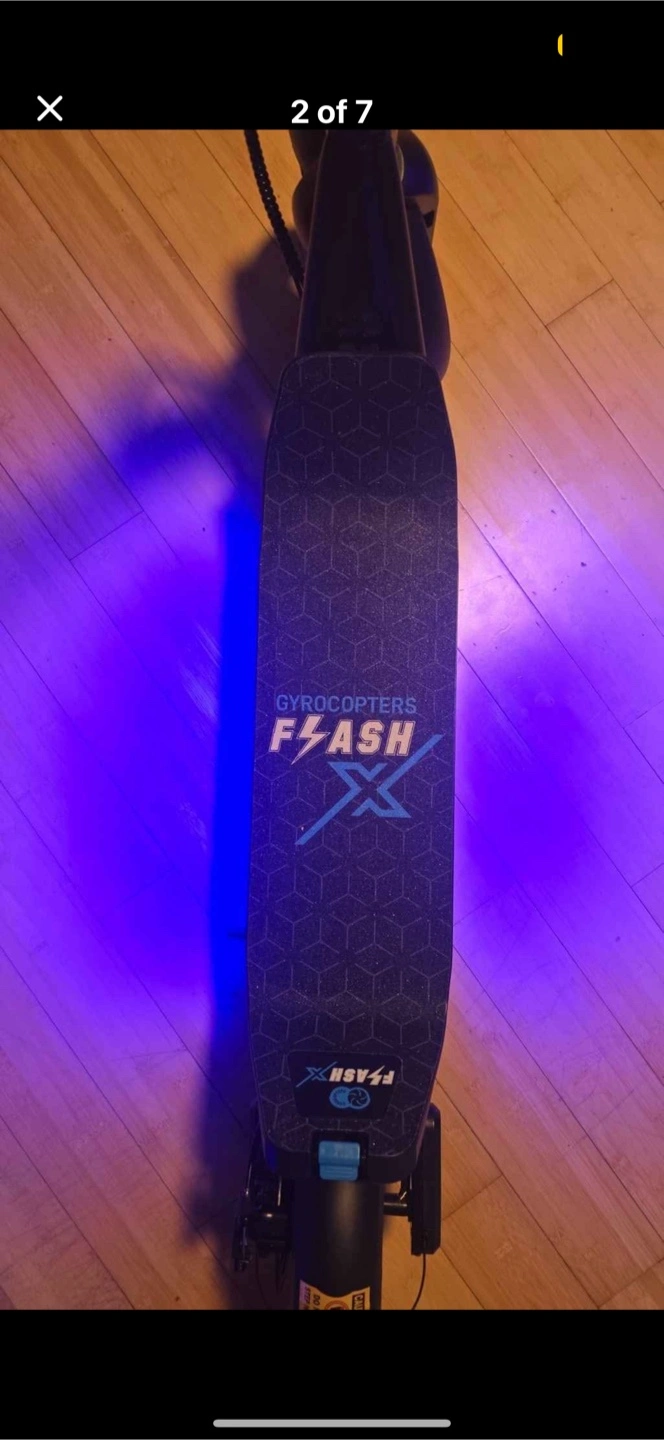 Selling a Gyrocopters Flash X electric scooter! It comes with a charger. This scooter is lightweight and portable, perfect for getting around town. Top speed is 32