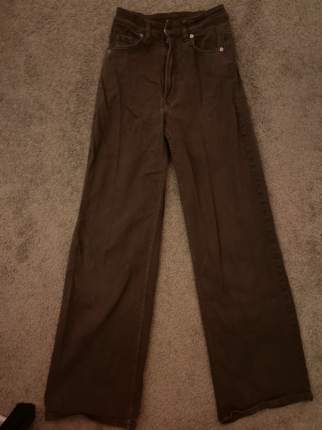 Selling a pair of H&M Divided Bell Bottom pants in a lovely brown colour! They are a size 0. Great for a casual and comfy look!