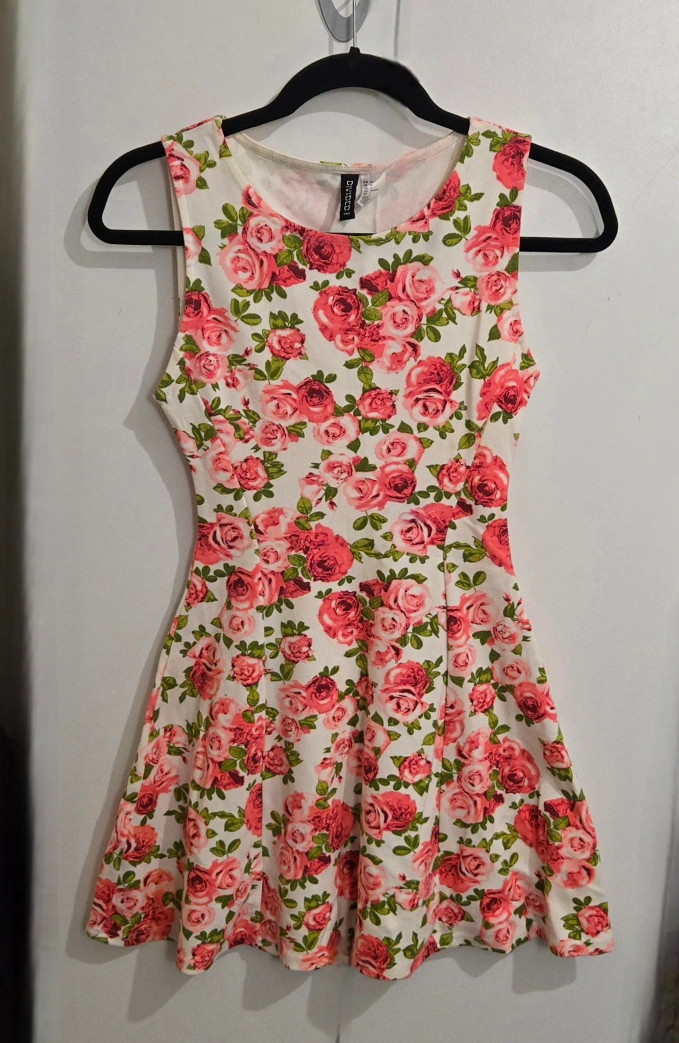 Cute H&M Divided sleevless dress with a pink and red rose floral print. Perfect for a night out or a daytime look.