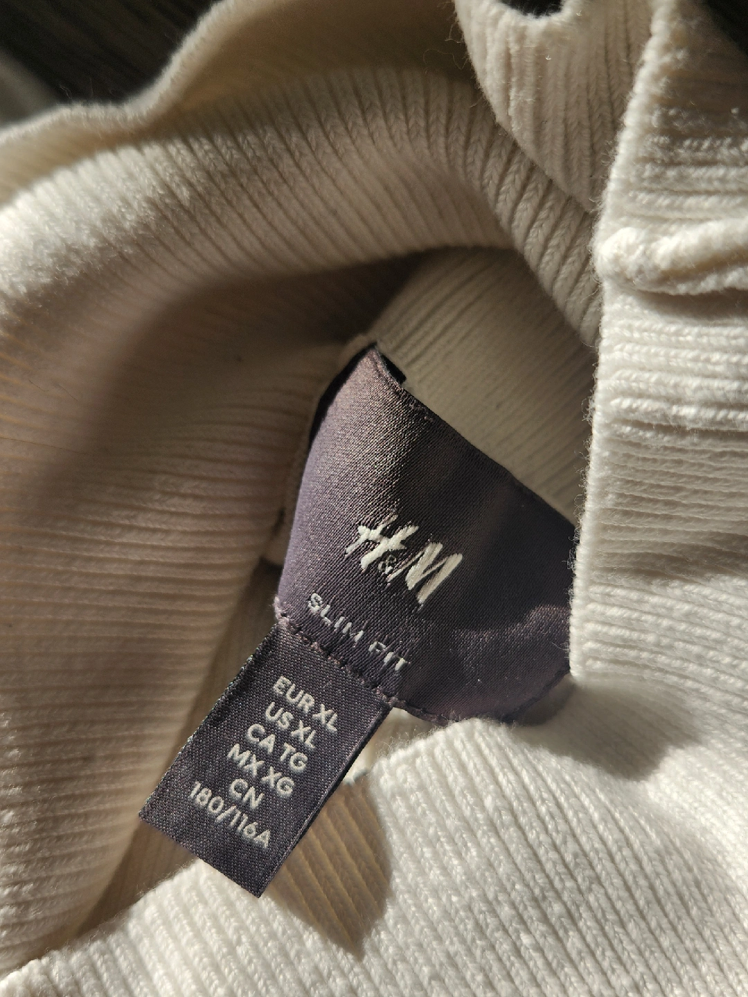 Selling a cream-coloured H&M slim fit turtleneck in size XL! It's in great condition and perfect for layering or wearing on its own