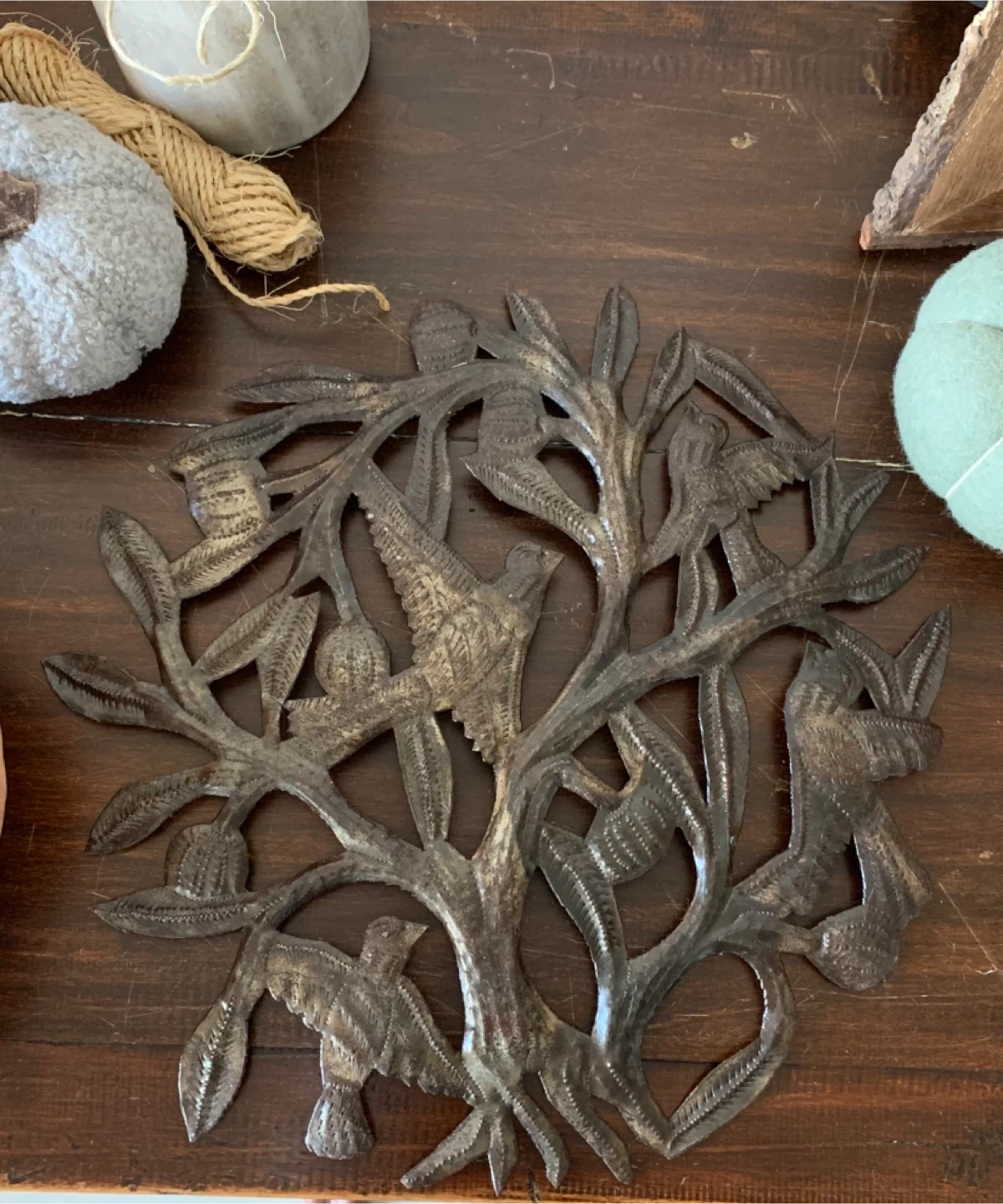 Handcrafted Recycled Steel Sculpture. It is craved by local Hawaiian artisan using only a hammer and little spike and made out of oil drum. This original piece of folk art measures 13"inches in width, making it a unique addition to any art collection.