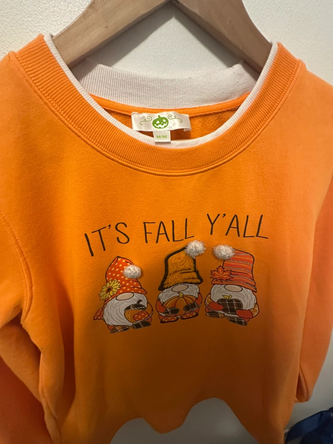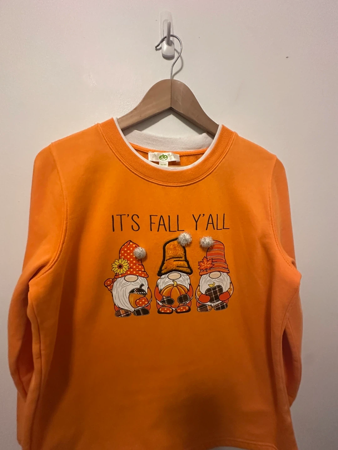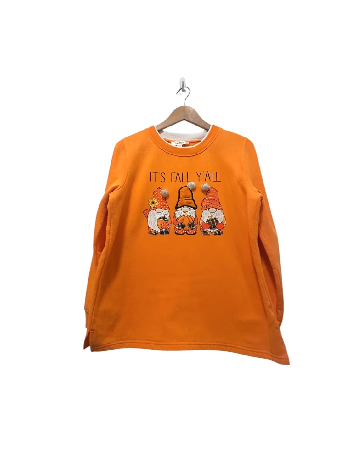 Halloween Orange Fall Gnomes Sweatshirt Cotton Medium Cozy orange sweatshirt with a cute 'It's Fall Y'all' design featuring adorable gnomes! Size medium. Perfect for the autumn season! Materials: Cotton 60% Polyester 40%