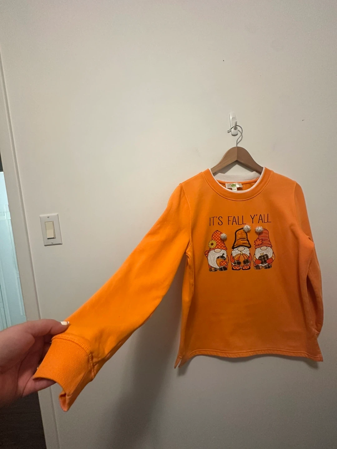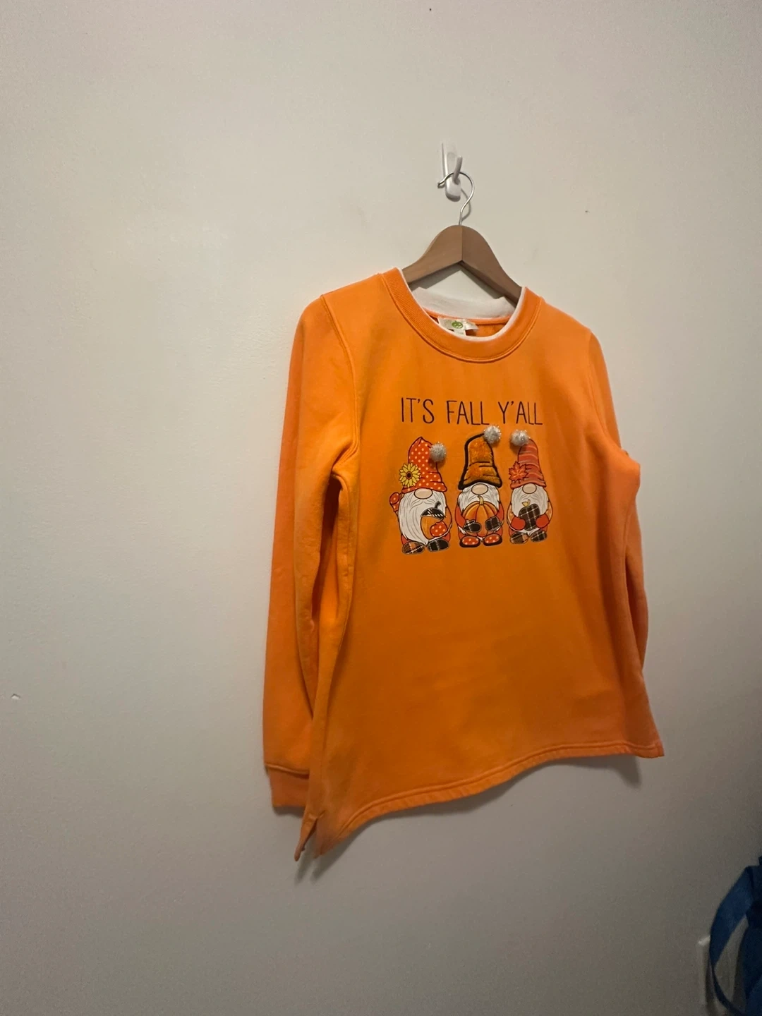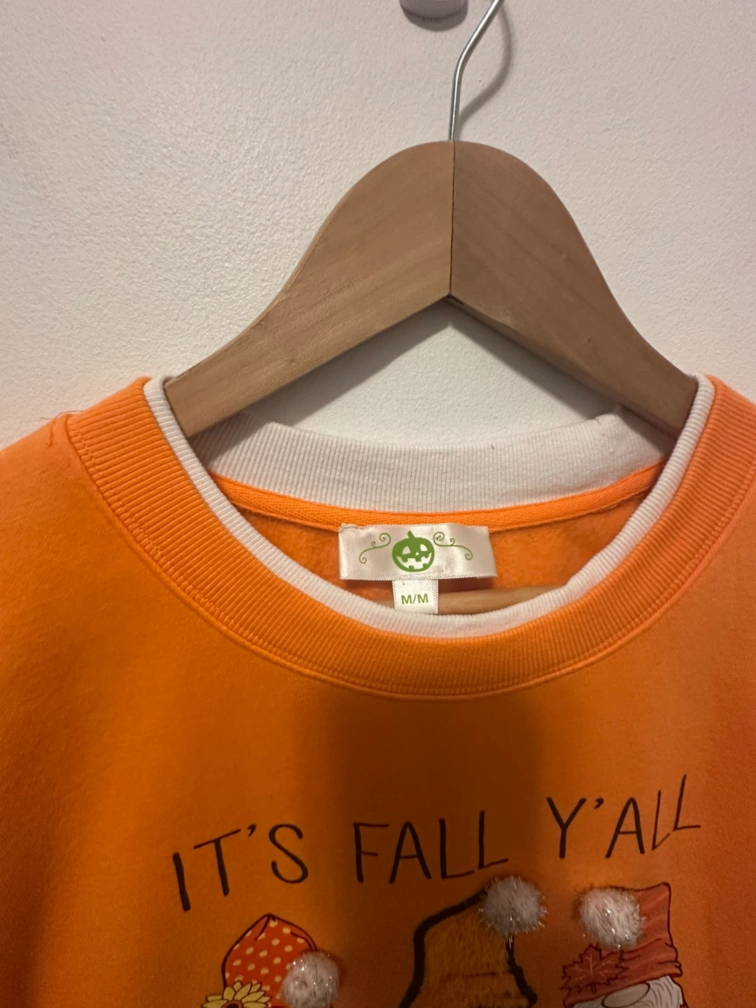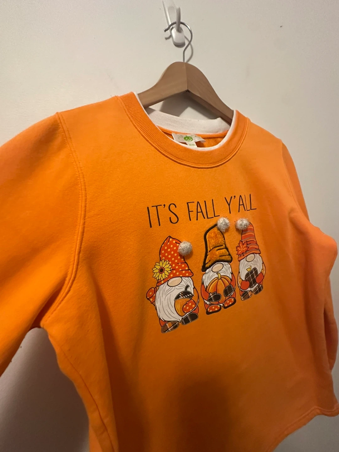 Halloween Orange Fall Gnomes Sweatshirt Cotton Medium Cozy orange sweatshirt with a cute 'It's Fall Y'all' design featuring adorable gnomes! Size medium. Perfect for the autumn season! Materials: Cotton 60% Polyester 40%