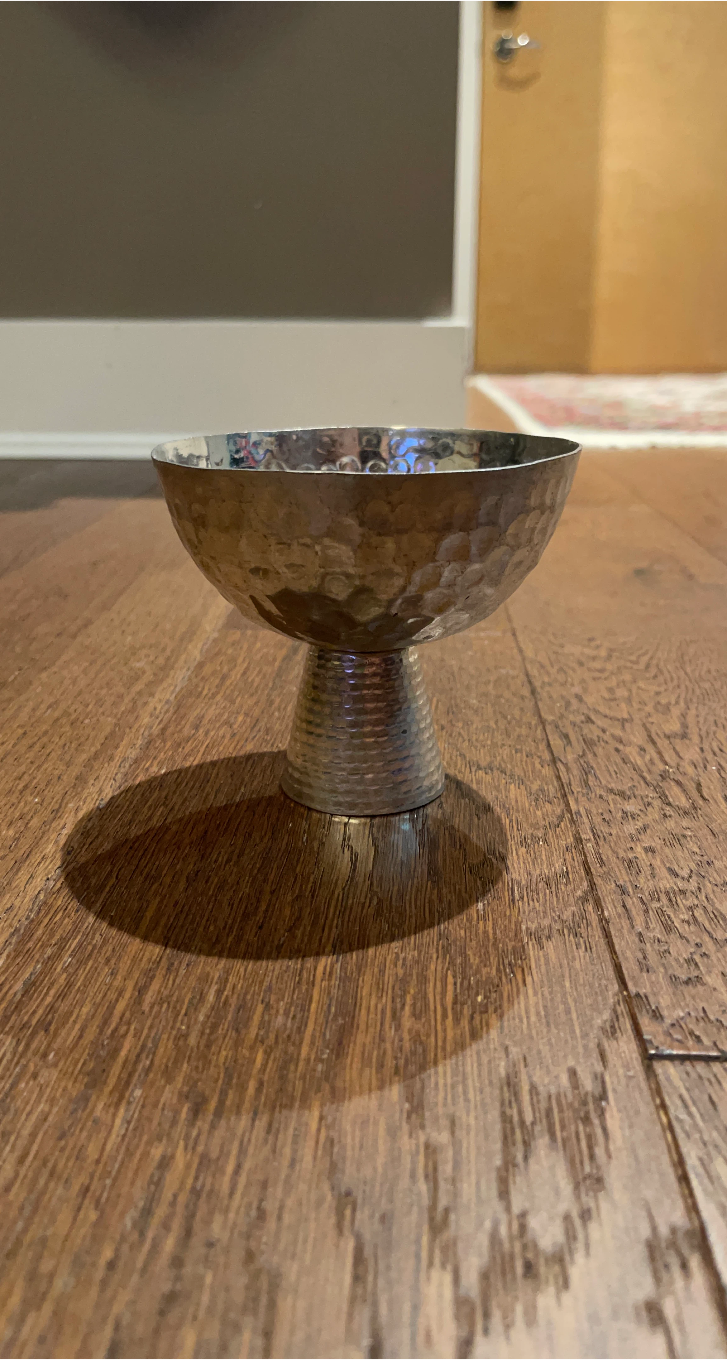 Selling a hammered metal goblet. It's in great condition and would be perfect for any occasion!