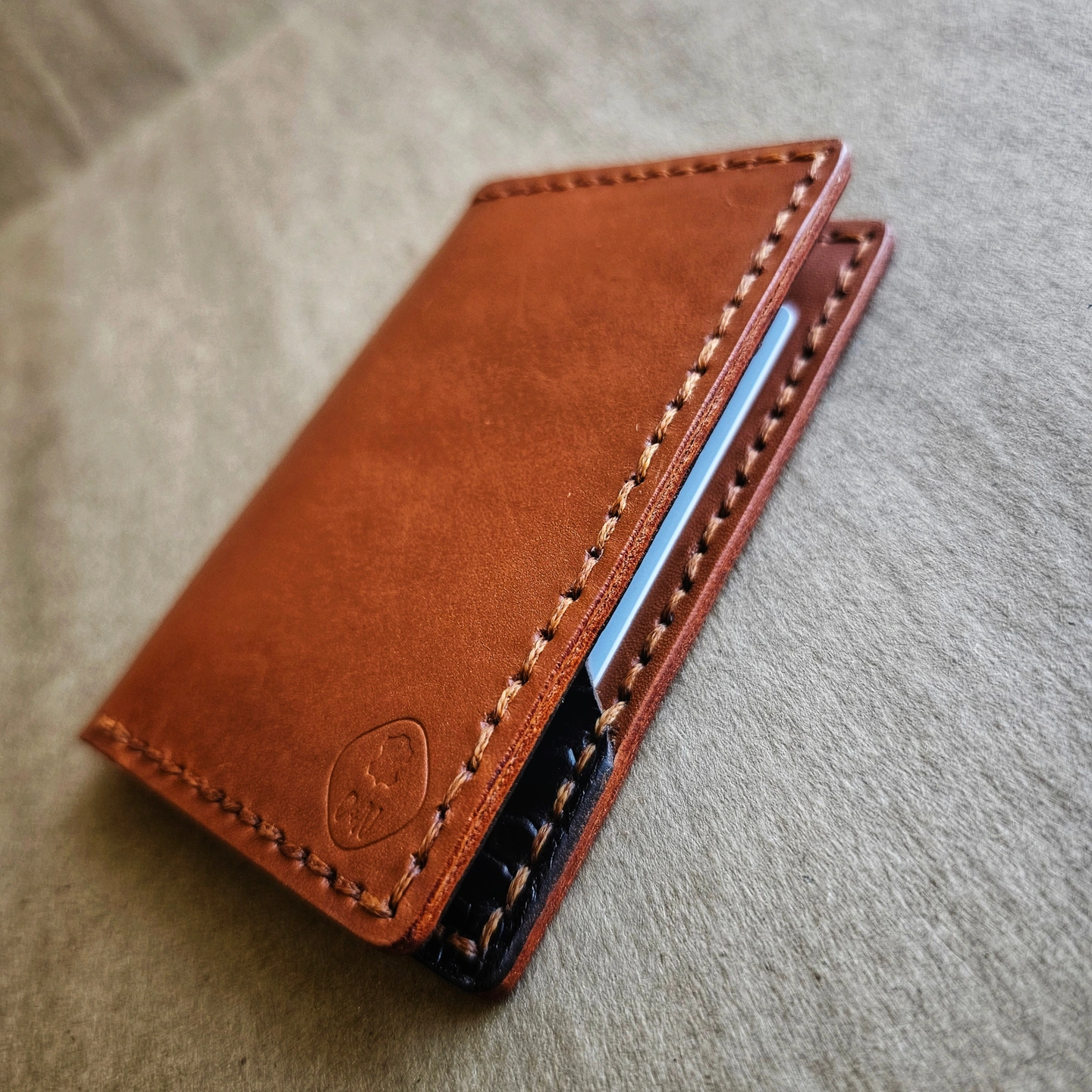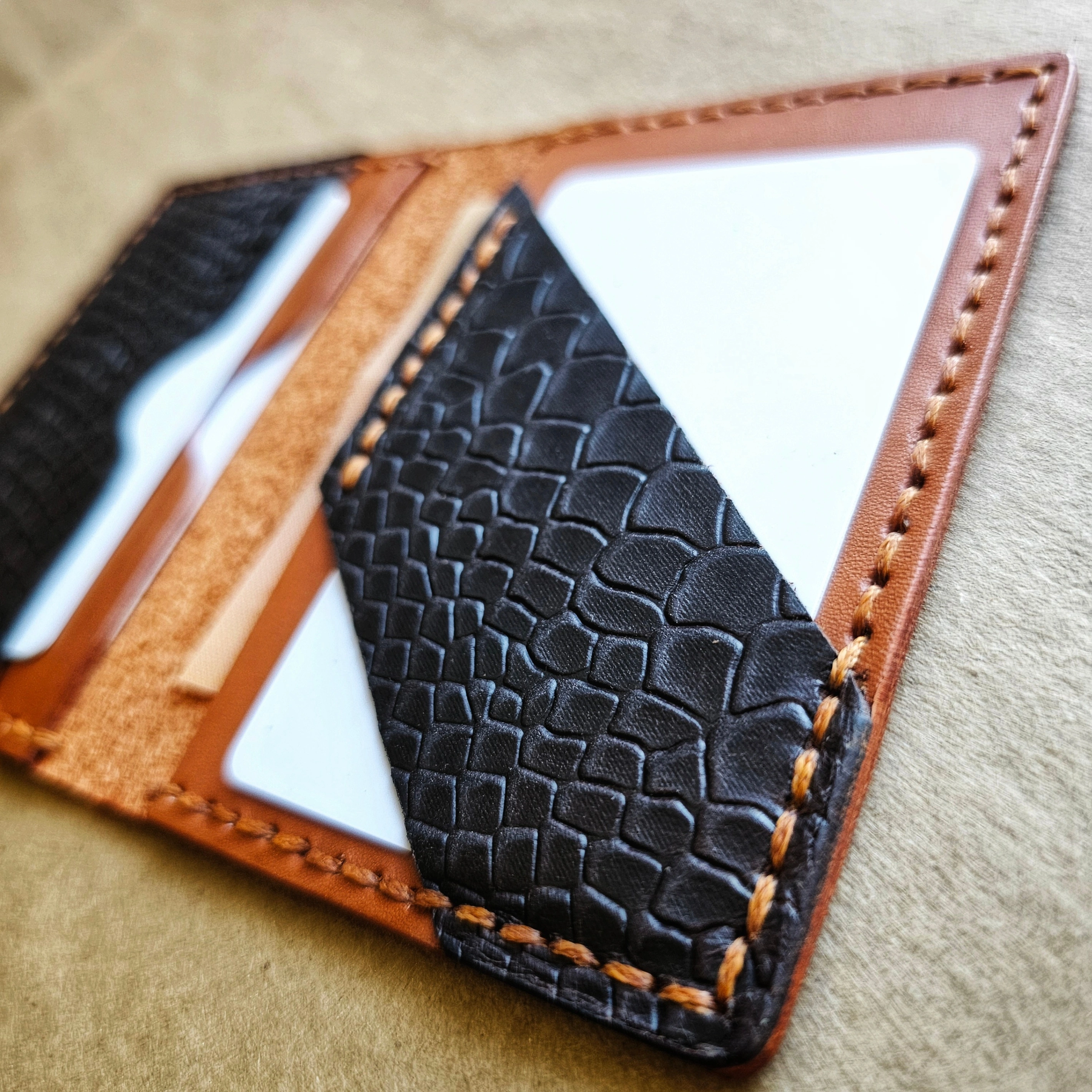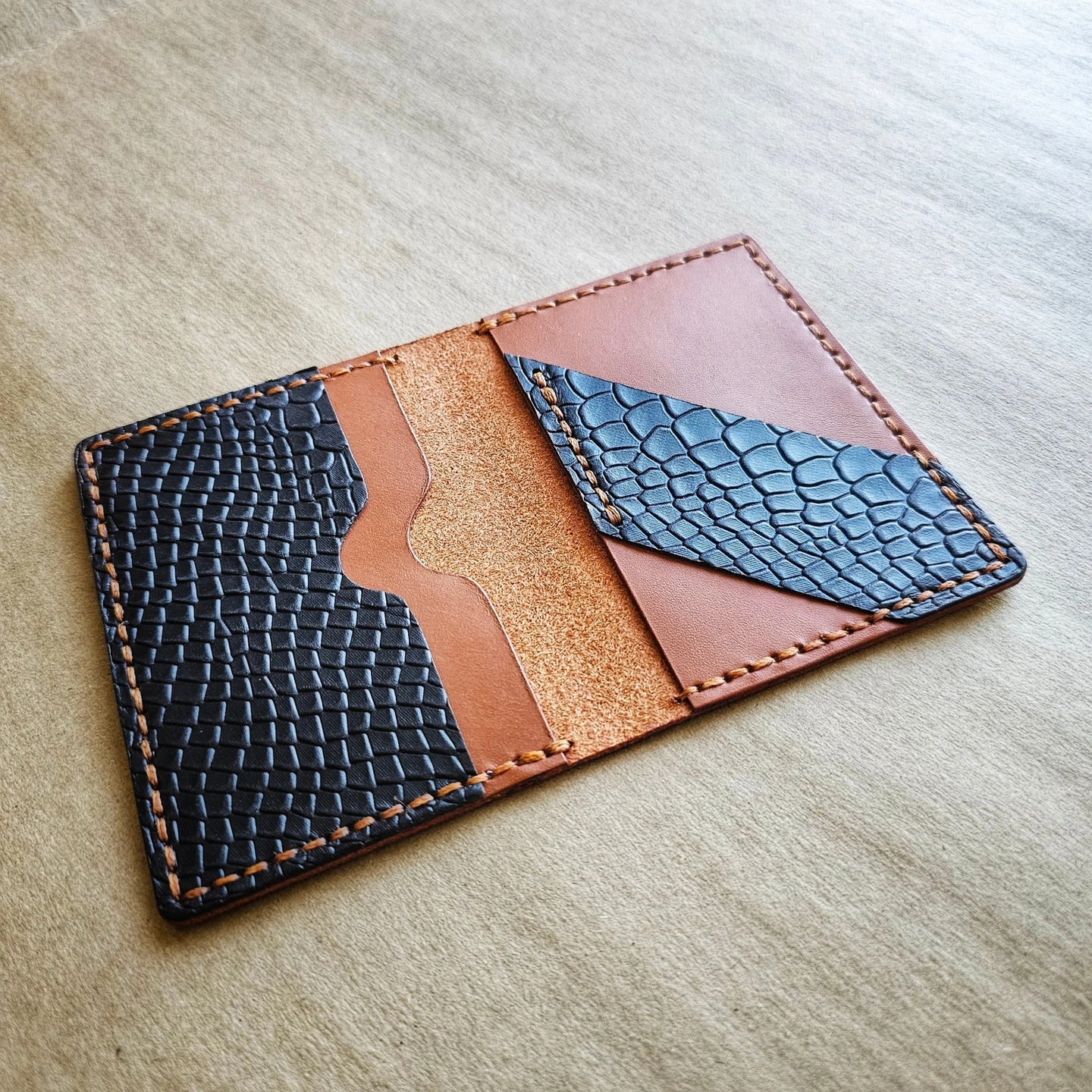 Handmade in our small workshop, this bifold leather wallet is crafted from vegetable-tanned cowhide with python-embossed accents. Lightweight yet durable, it comfortably fits up to 10 cards and cash. **Please note that each item is handmade to order and entirely unique. Due to the natural characteristics of the leather, the final product you receive may differ slightly from the pictures shown.** * Each piece is hand-cut, hand-crafted, and hand-stitched in Canada with care by our small workshop. * Compact and minimalist design with 4 card slots for organization. Dimensions: approximately 11cm by 8cm. * Thoughtful Gift: An excellent choice for gifting during the holiday season, birthday, or any other occasion.